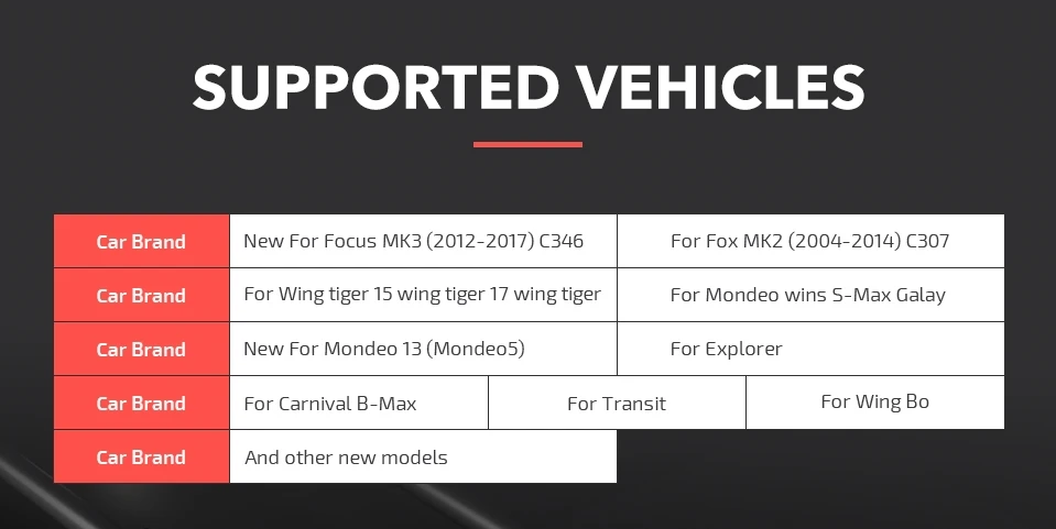 UCDS в настоящее время работает со следующими платформами: для Focus II 2004-2011; Для Focus III 2011, 2015; Для Kuga I, для Kuga II; Для C-MAX; Для S-MAX; Для MONDEO IV; для Mondeo 2015; Для Galaxy; Для Transit; Для Fiesta 2008, 20015 и т. д.