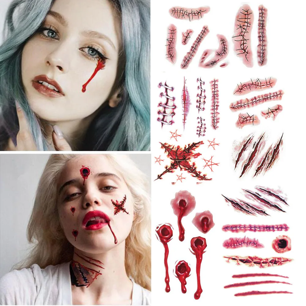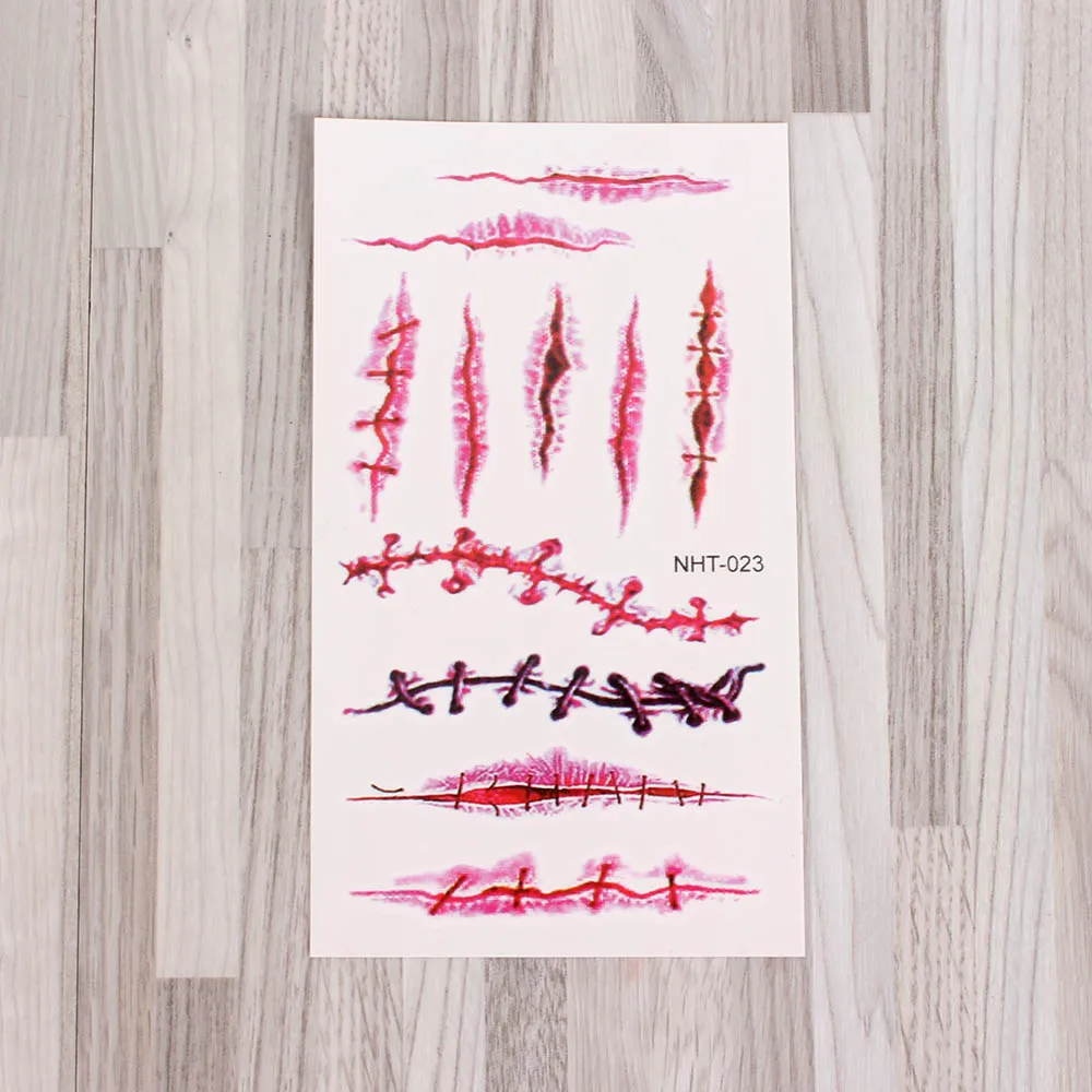 Тату для Хэллоуина Зомби Шрамы Татуировки с поддельной паршивой кровавый макияж Хэллоуин украшение рана страшная кровь травма стикер