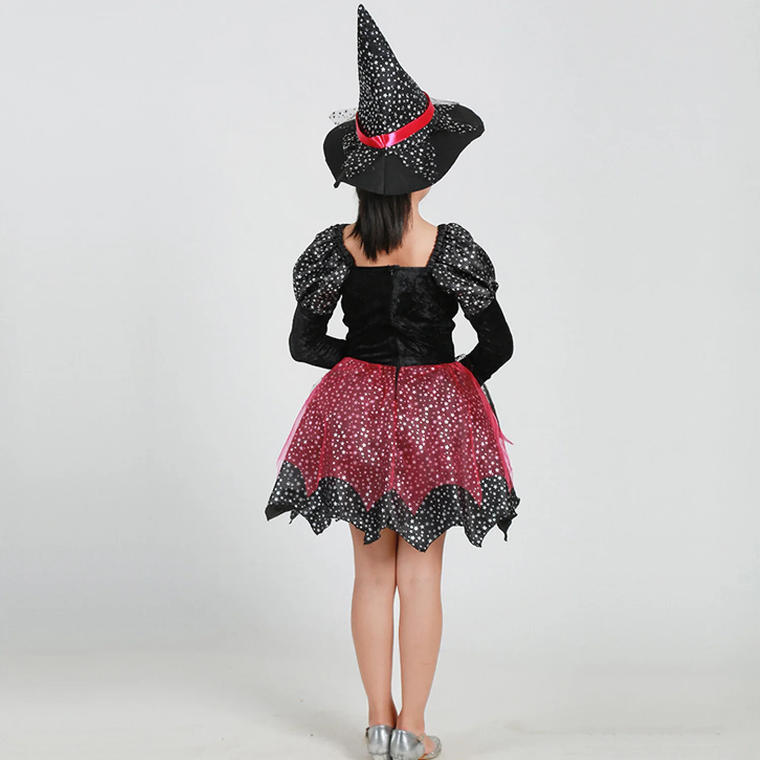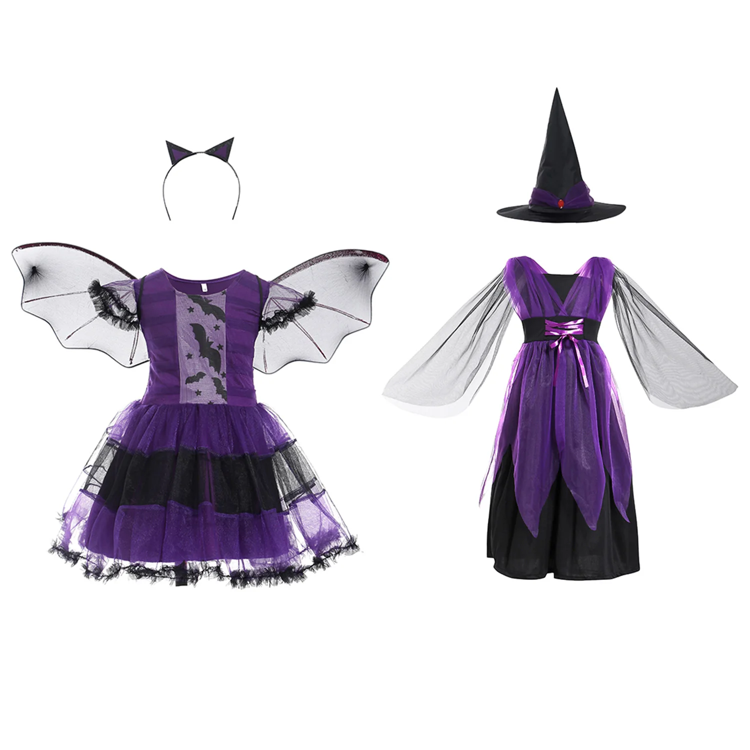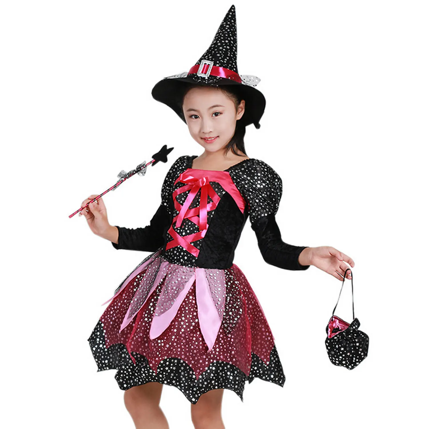 Детское платье с юбкой ведьмы для костюмированной вечеринки на Хэллоуин для девочек; Костюм с шляпой и волшебной палочкой; Яркие сумочки для праздника, карнавала; Нарядное платье; Вечерние платья