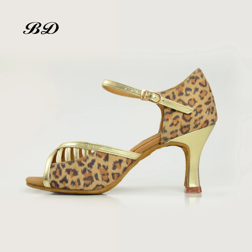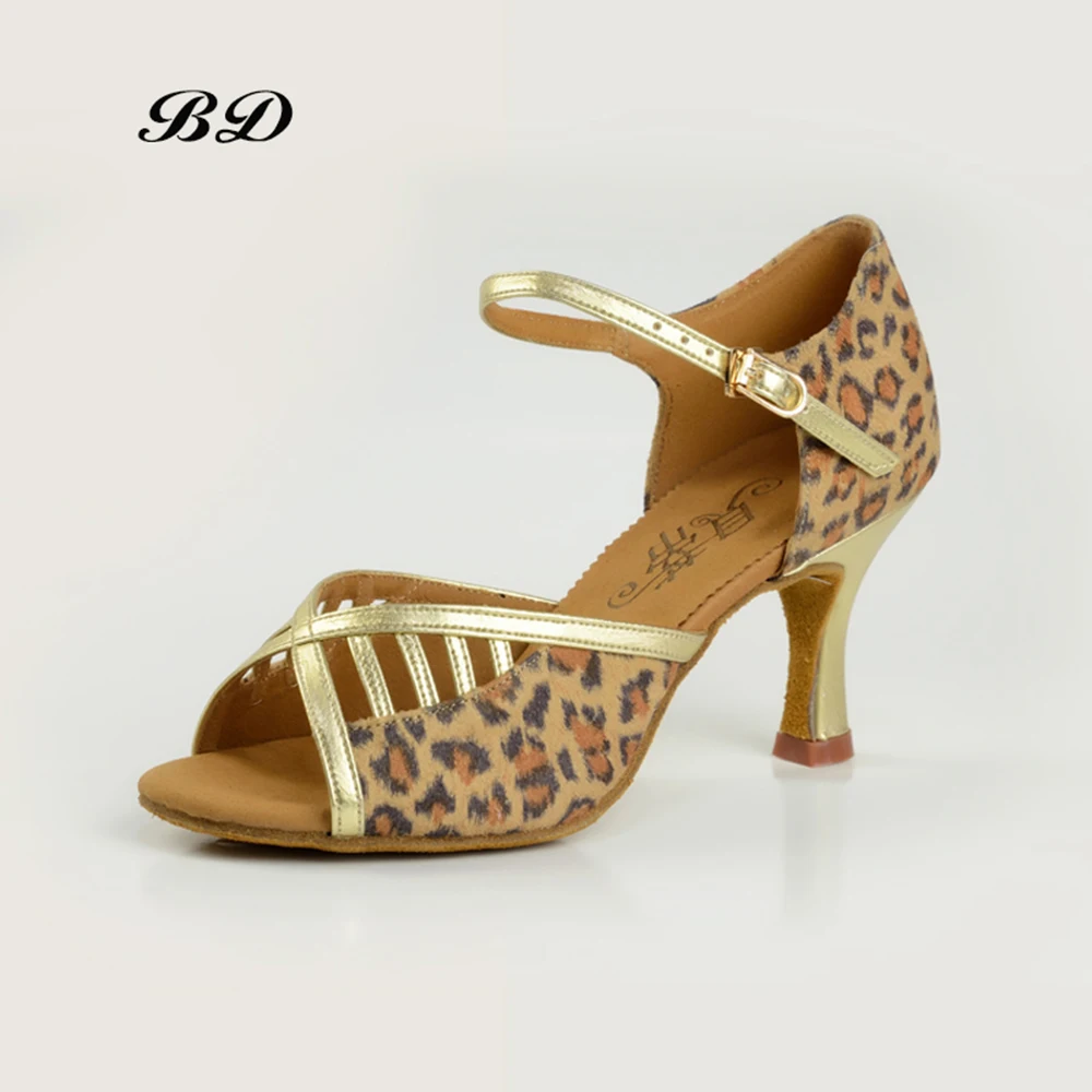 Кеды Обувь для танцев BD Танцы обувь Туфли для латинских танцев Обувь для танцев бальный Для женщин Взрослый Мягкая подошва 2337 Каблук 7,5 см бесплатная сумка с леопардовым принтом