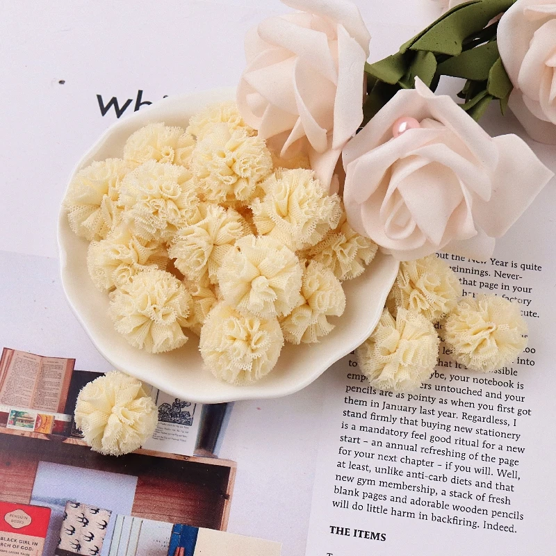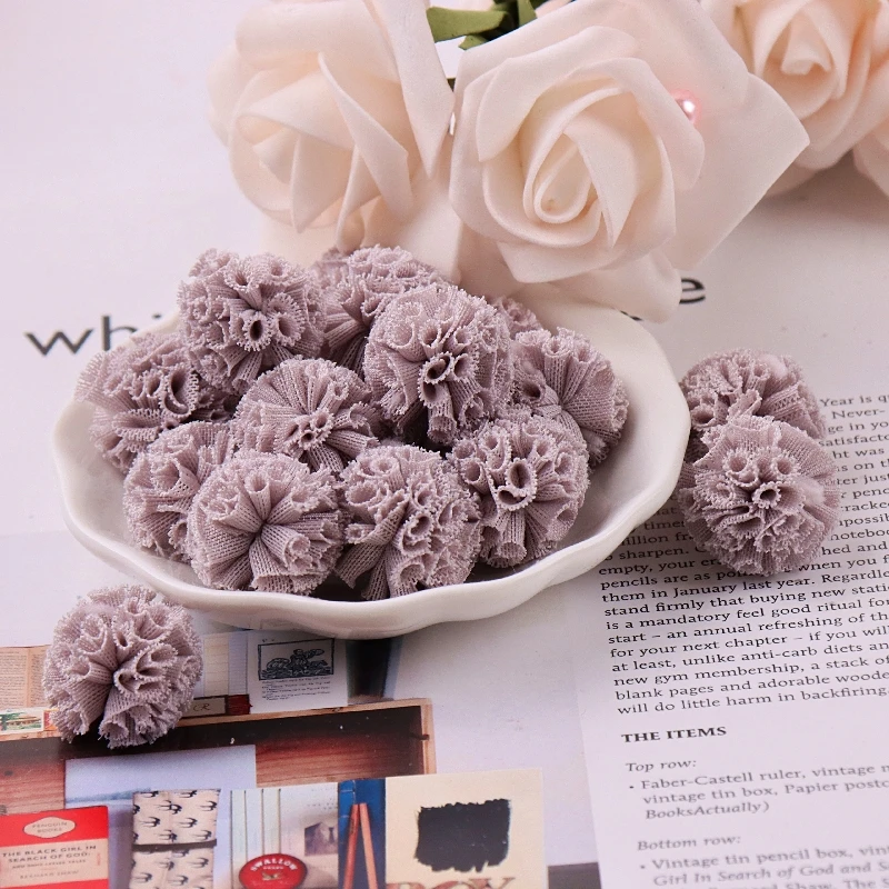 Кружевные марлевые Сетчатые эластичные цветочные шарики для самостоятельного изготовления, могут быть использованы для украшений, головного убора, ювелирных изделий, одежды и других украшений, очень милые.