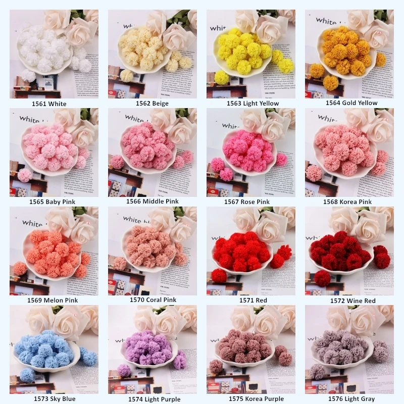 Особенности: 100% новые и высококачественные Размер: 2,5 см в диаметре Материал: полиэстер акрил Цвета: 20 цветов как на фото. Вес: около 0,85 г/шт. для 25 мм
