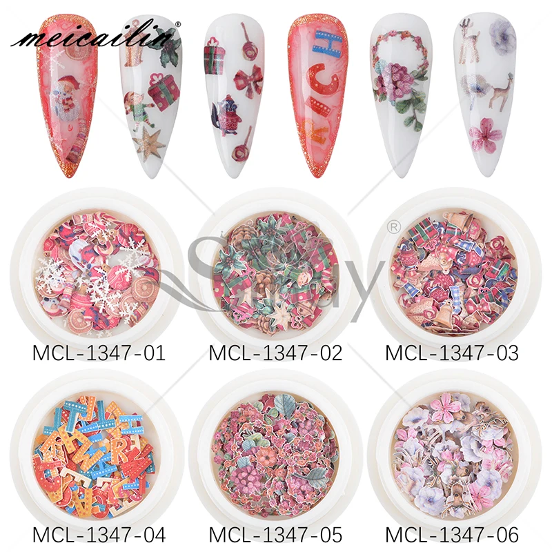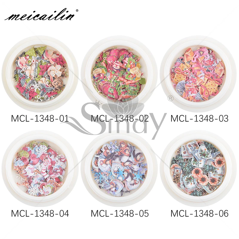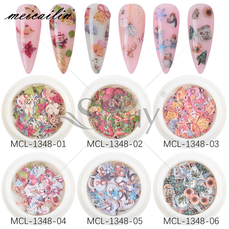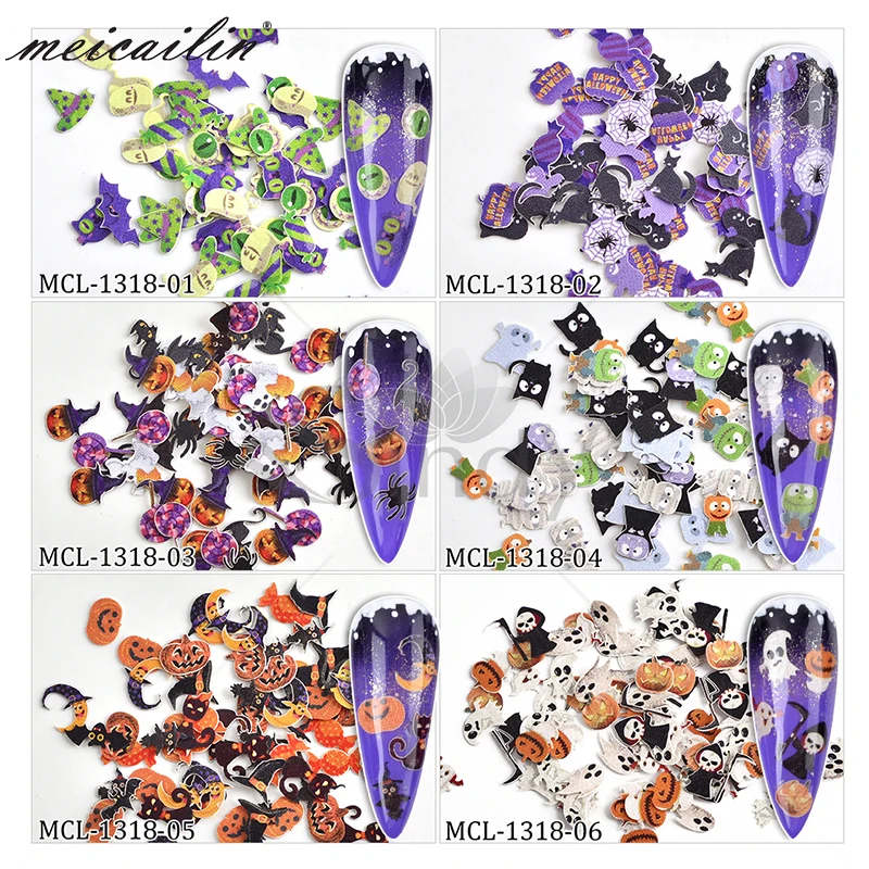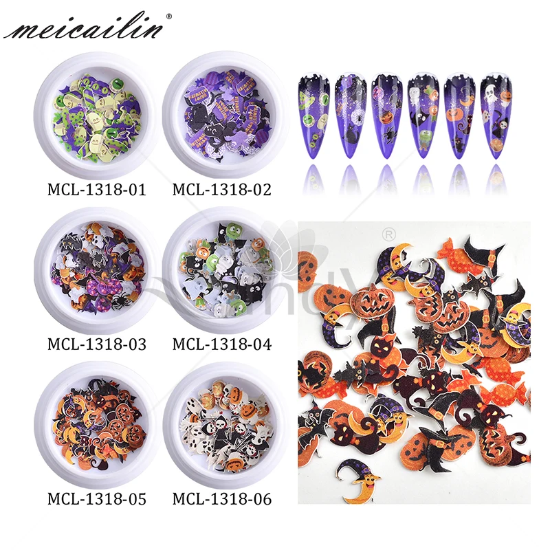 6 коробок, рождественское искусство для ногтей, с блестками, лось, конфета в виде снеговика, смешанные дизайны, Череп, тыква, замок, призрак, ведьма, летучая мышь, 3D Маникюр, хлопья на Хэллоуин