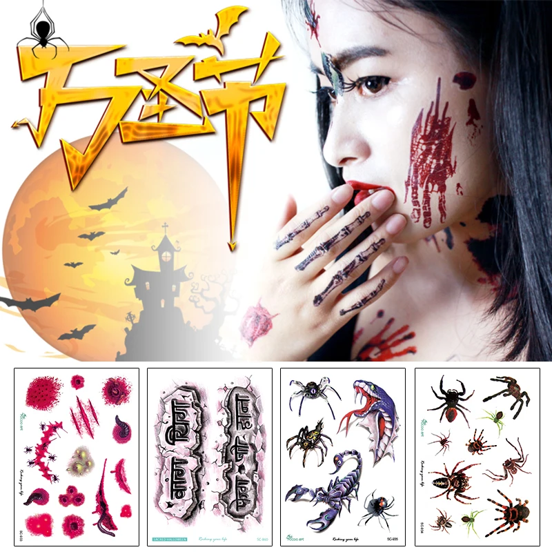 Экологически водостойкая Временная тату-наклейка на руку, реквизит для Хэллоуина, ужасная рана, шрам, тату-наклейка