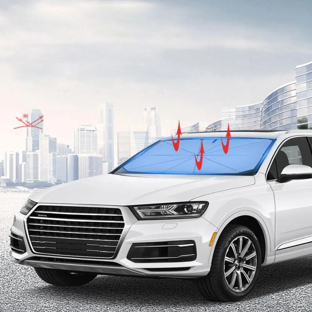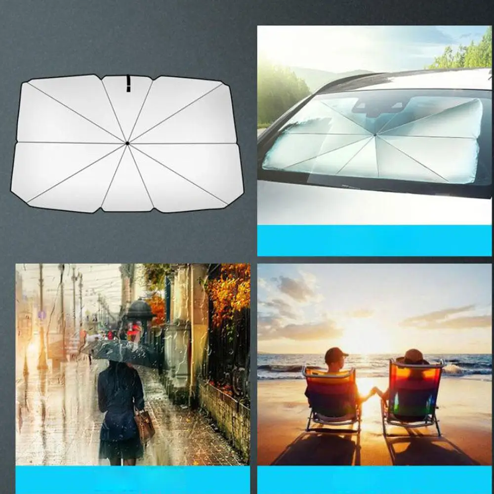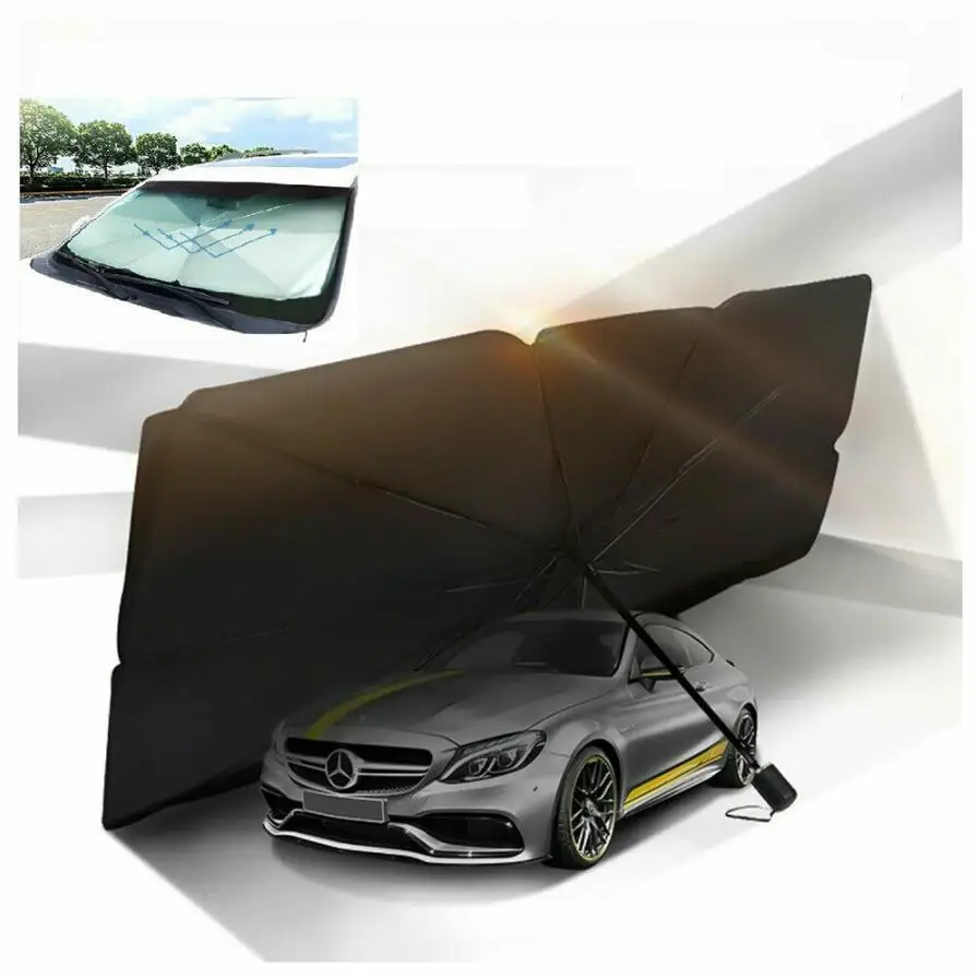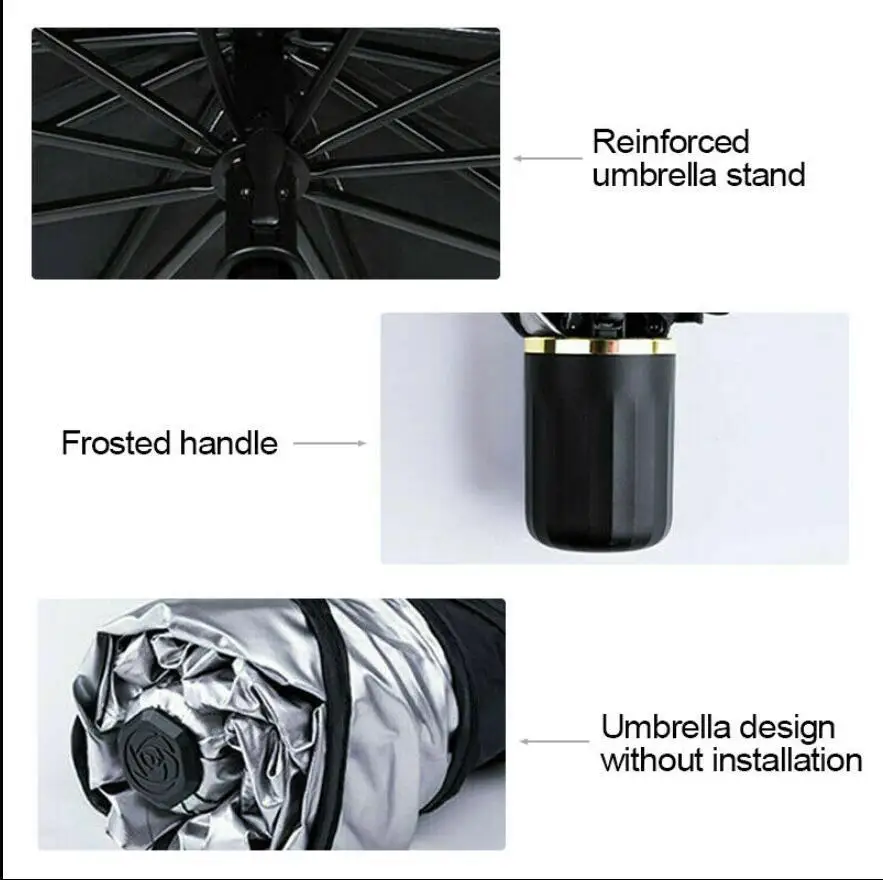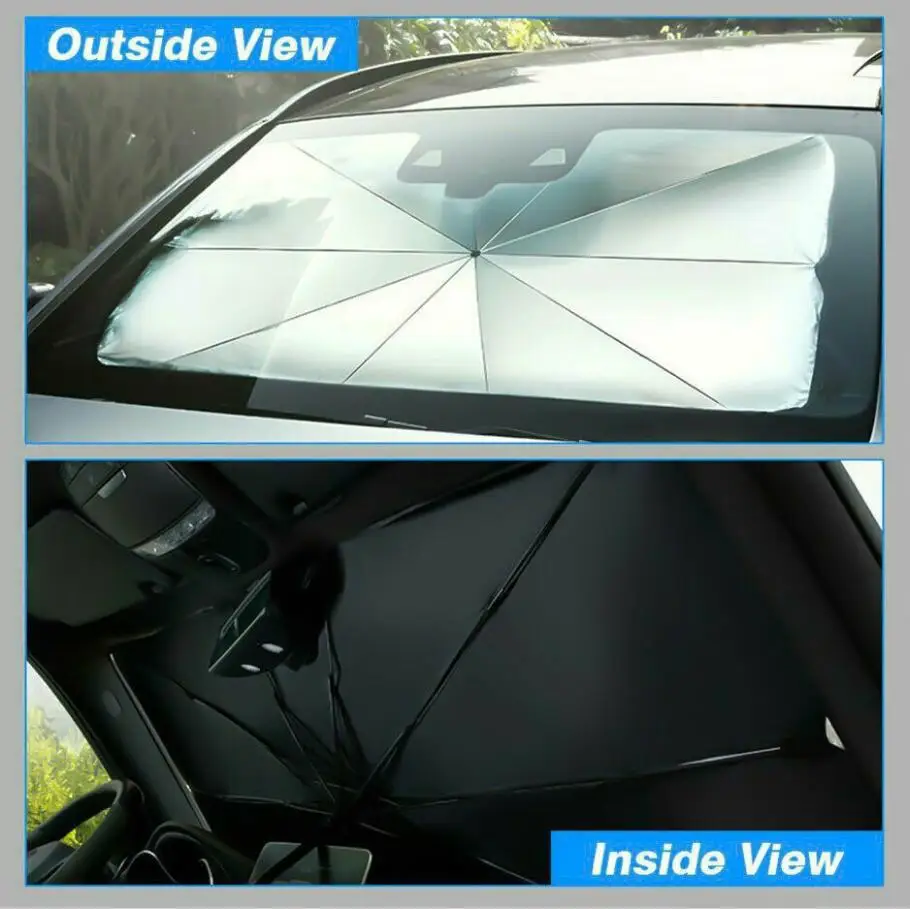 Зонтик структура ветрового стекла солнцезащитный козырек имеет десять стальных ребер обеспечивает хорошую поддержку и предотвращает падение вниз. Он блокирует УФ-излучение внутри, вам не нужно беспокоиться о потере или краже.