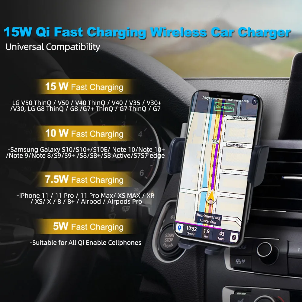 【Qi сертифицированное безопасное беспроводное крепление для телефона с быстрой зарядкой】