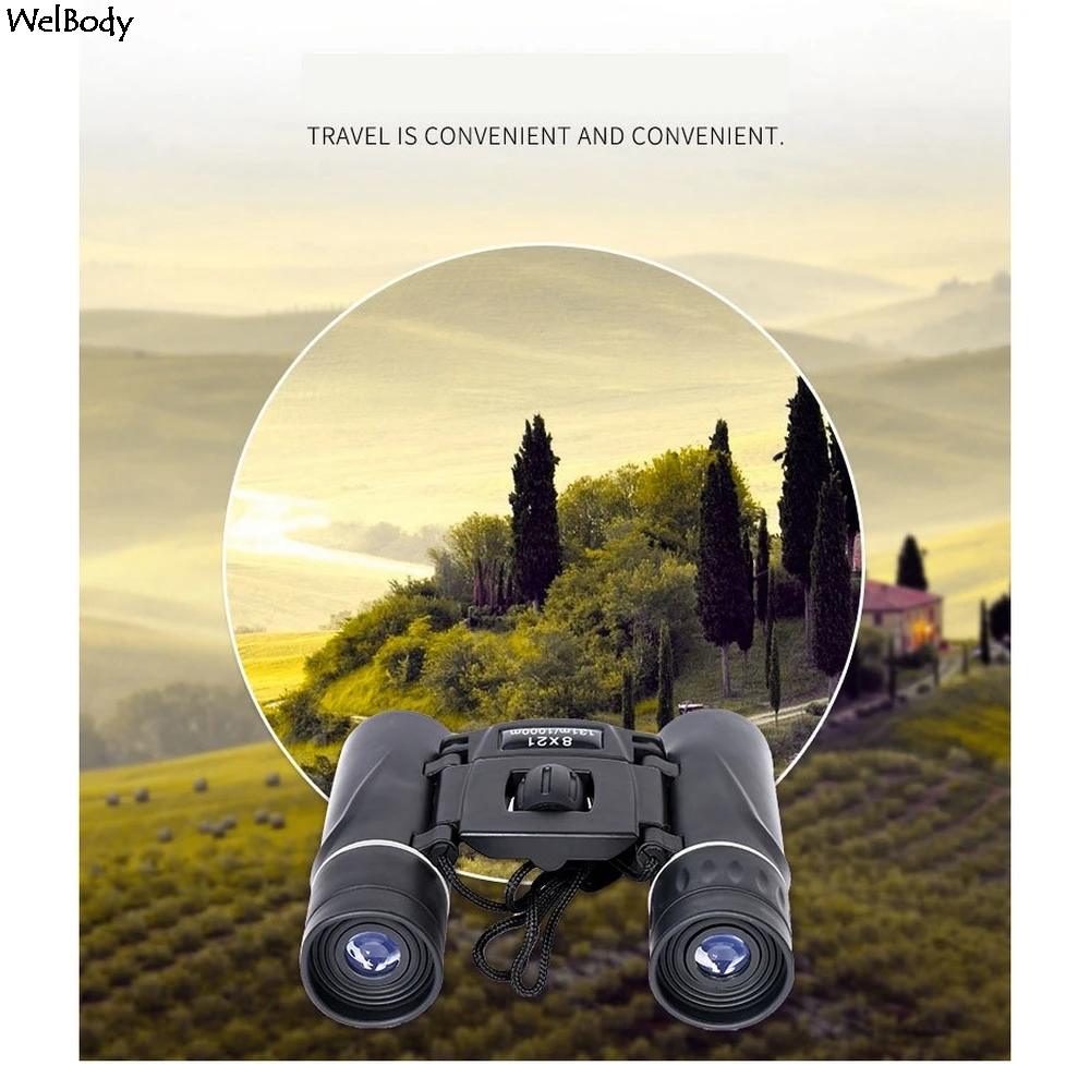 8x21 компактный зум бинокль большой диапазон складной HD мощный мини телескоп Bak4 FMC оптика охотничий спортивный черный детский телескоп