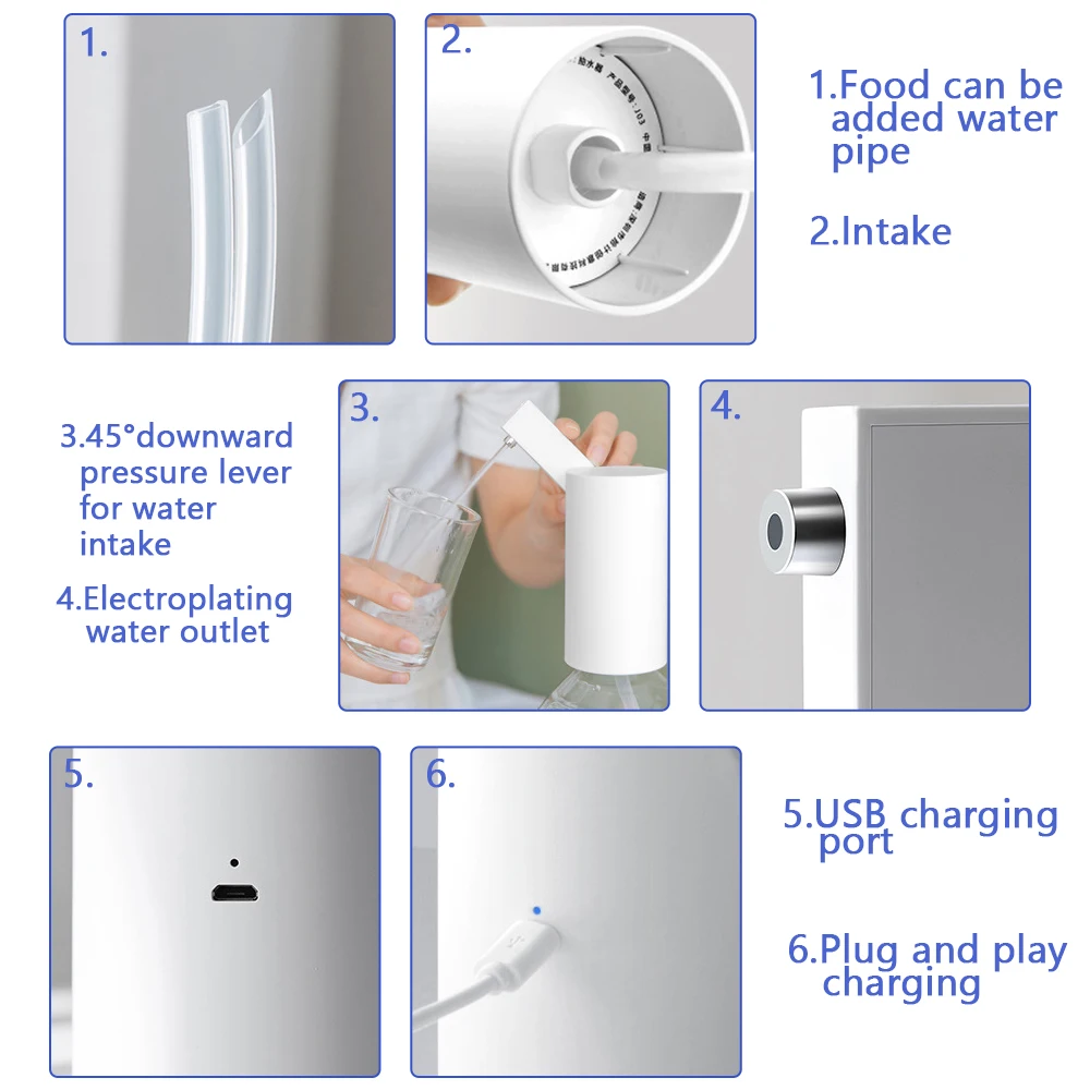 Перезаряжаемый usb-диспенсер для воды: Встроенный перезаряжаемый аккумулятор позволяет заряжать его с помощью usb-кабеля, не нужно подключаться к кабелю питания для использования. Он будет работать в течение 8-10 баррелей воды после полной зарядки.