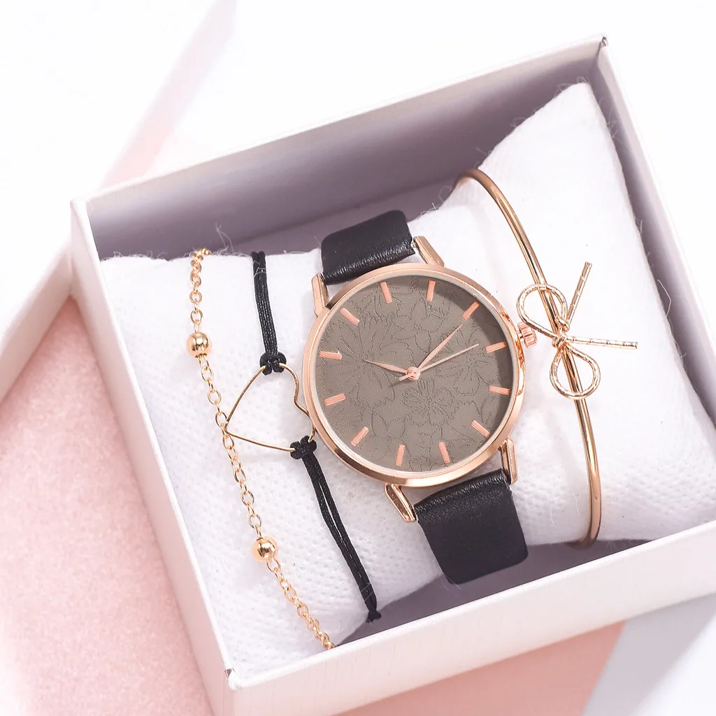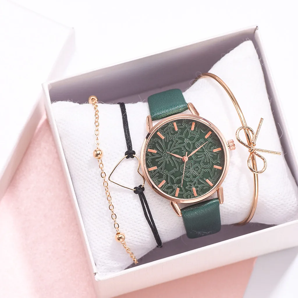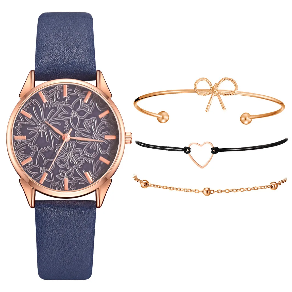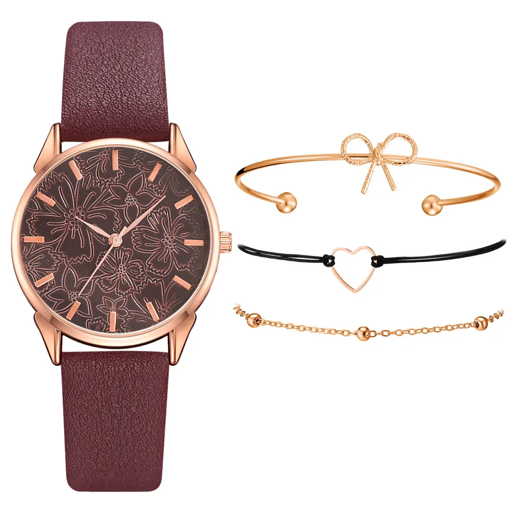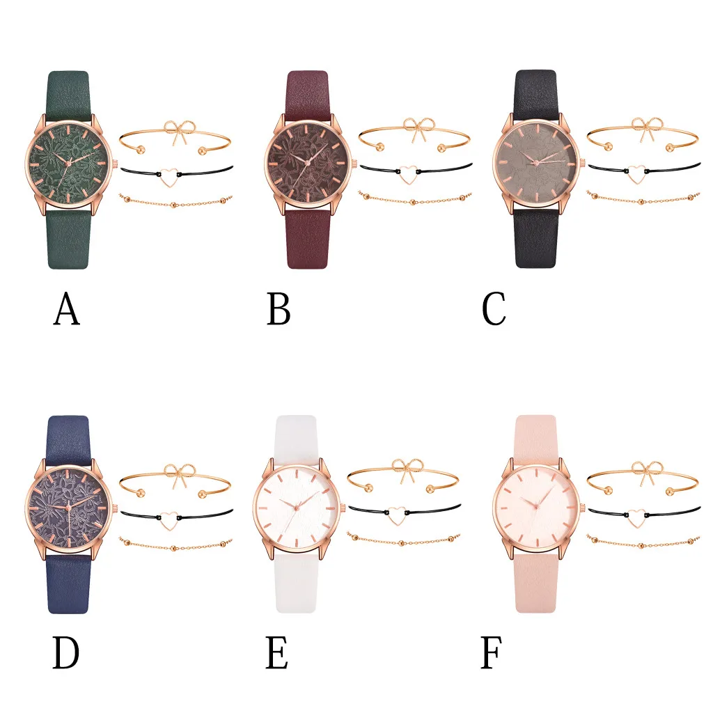 2020 женские часы браслет набор платье дамы браслет часы повседневные кожаные кварцевые наручные часы Часы Relogio Feminino # Y80