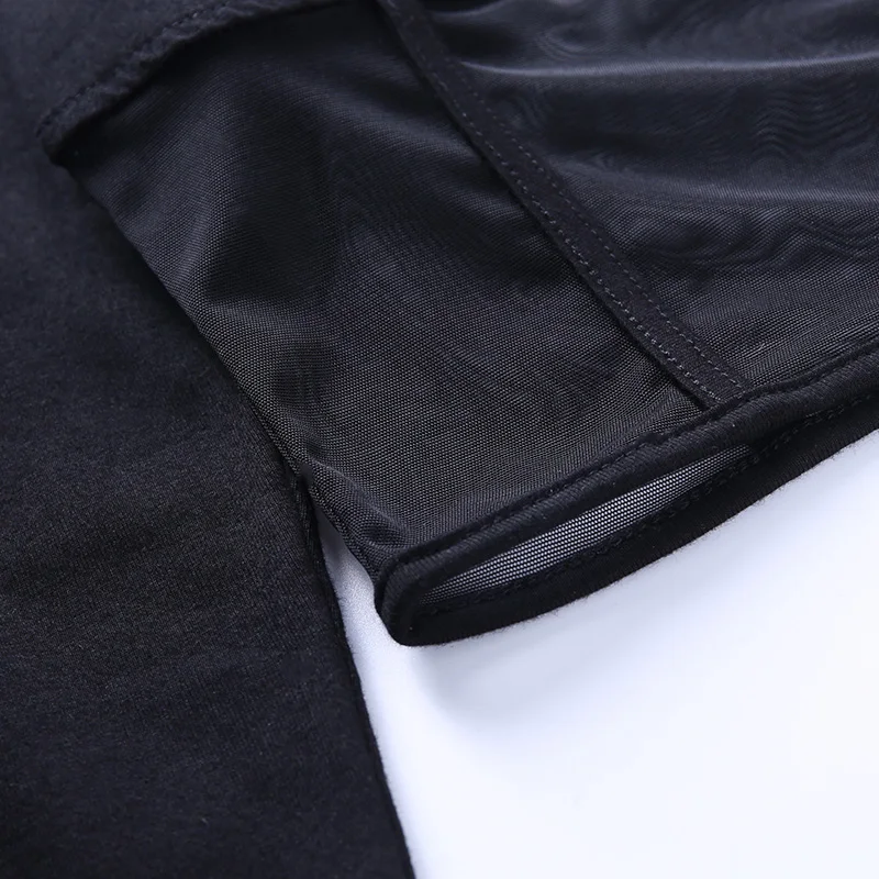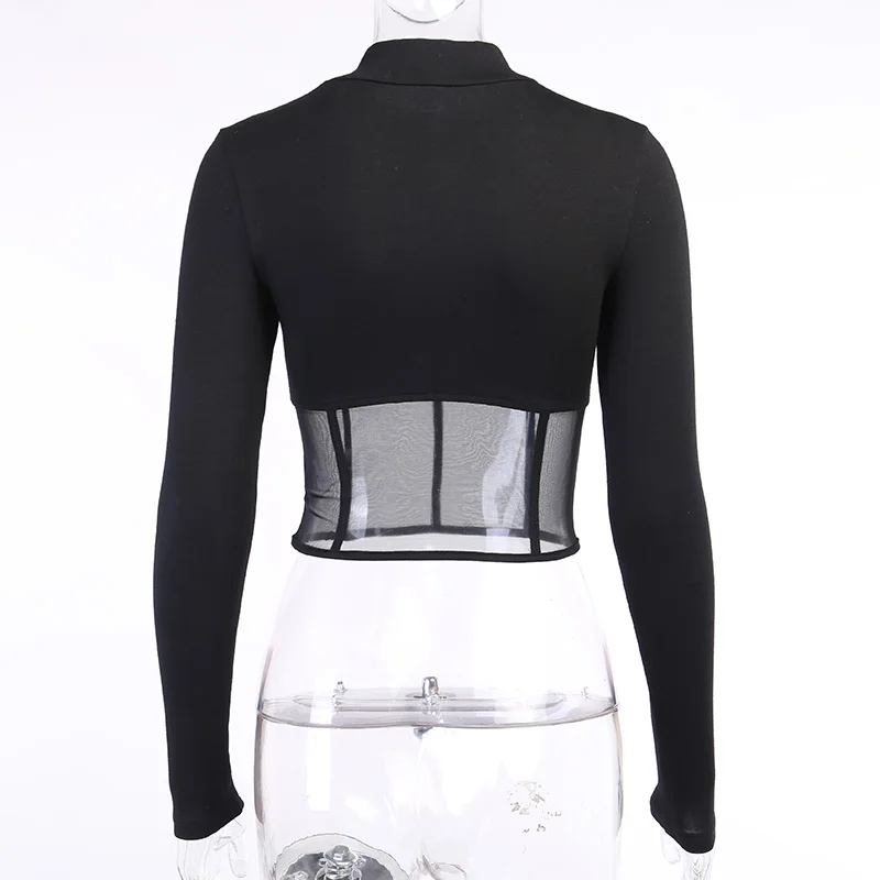 Однотонный пуловер с длинными рукавами и высоким воротником, комбинированный с прозрачной газовой туника