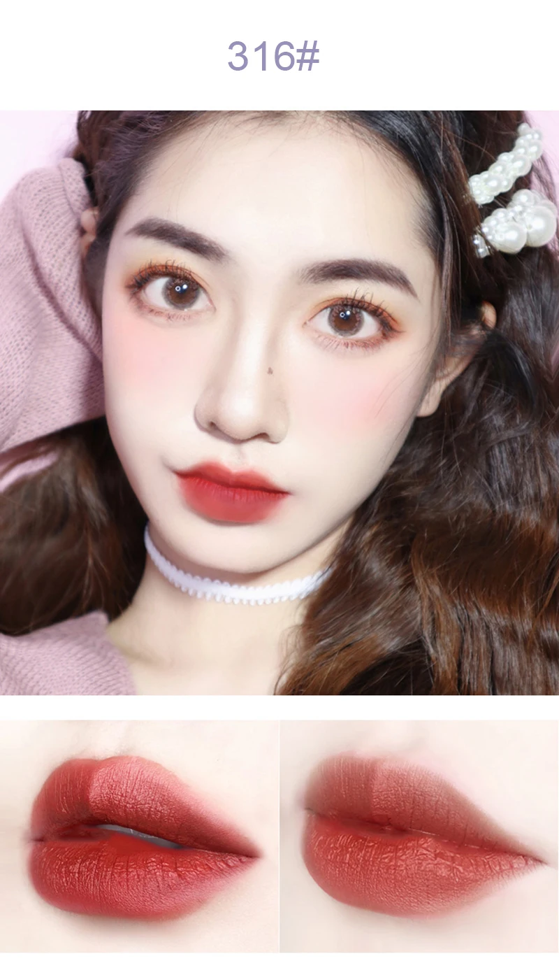 Цвет богатый, цвет полный, цветопередача высокая, на ощупь мягкая, и она может легко создать мягкий и туманный эффект тюля для губ с прикосновением.
