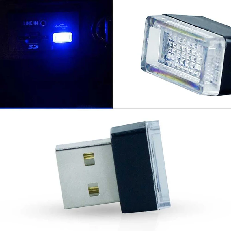 * Миниатюрный USB плагин ультра-синий светодиодный интерьер автомобиля окружающее освещениеСветодиодные лампы