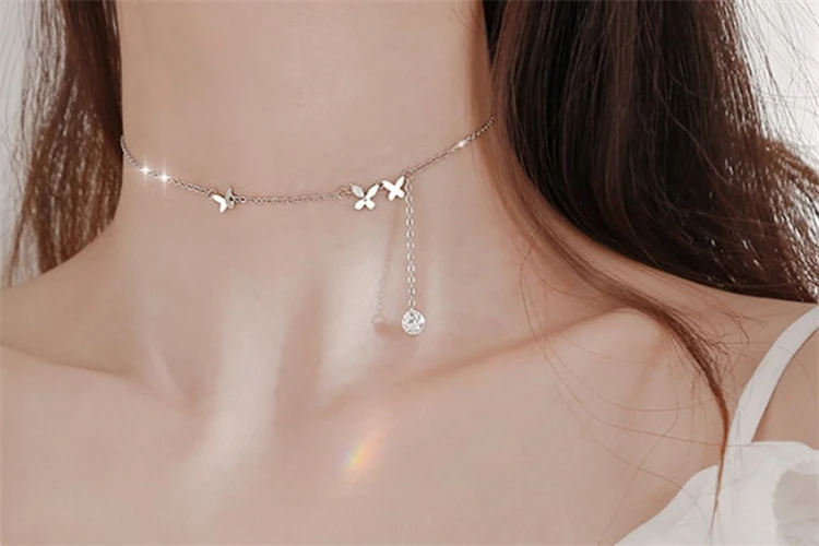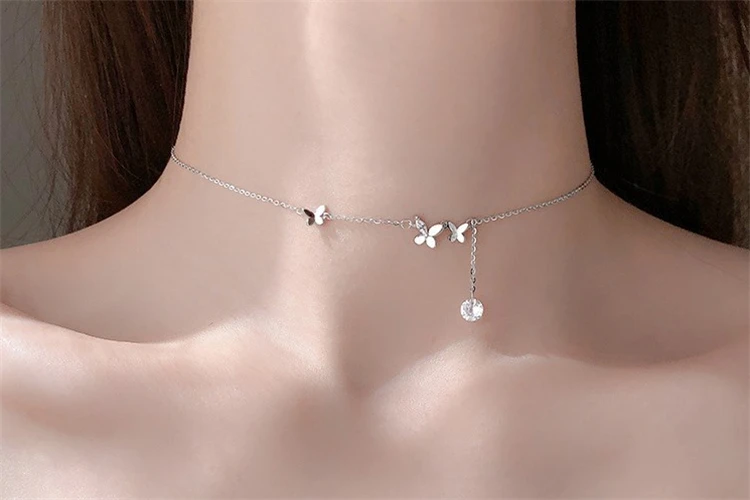 Новое поступление, Трендовое женское ожерелье с подвеской-бабочкой и кисточкой, 925 Настоящее серебро, две вещи, романтические милые девушки, подарок на день рождения, ювелирное изделие