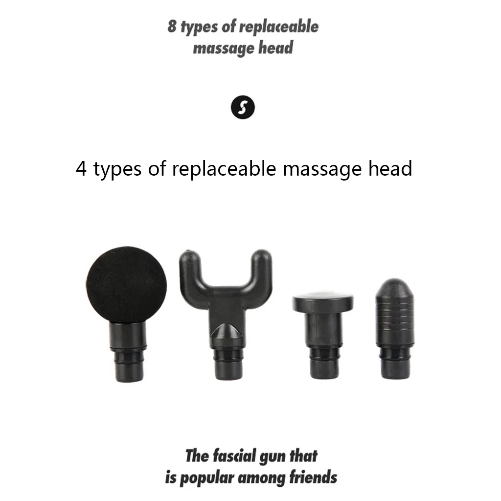 4 4 сменных массажных головки и 3 регулируемых уровня скорости: массажер оснащен четырьмя различными массажными головками, чтобы помочь пользователю расслабить различные части тела. Массажная головка с вилкой предназначена для позвоночника, плоского, для каждой части тела; Шариковая, для суставов; Круглая, для большой группы мышц; при необходимости пользователи могут изменить скорость массажного оружия.