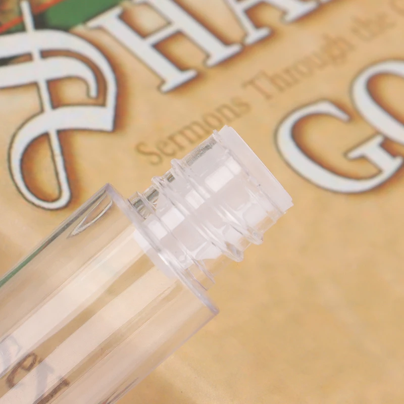 Прозрачные пластиковые тюбики для бальзама для ресниц с нажимной крышкой и подкручивающейся основой.