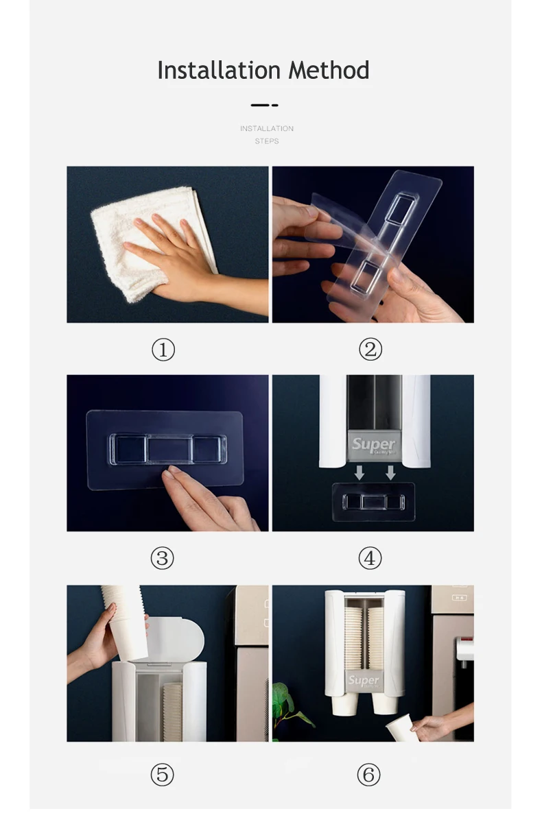 【Pull Тип чашки dispenser】-подходит для устранимая пластичная чашка диаметр ≤ 2,95 дюймов. Разработан с регулировкой когтей, что гарантирует, что чашка может быть легко вынена один за другим без отходов. Надежно в розницу Подходит для от 3-7,5 унций бумаги или пластиковых одноразовых стаканчиков. 【Большая емкость и дополнительное хранение 】-Двойной диспенсер может удерживать 80 чашек. Компактная конструкция, безусловно, лучше экономит пространство и выглядит, чем держатель длинной трубки при установке рядом с диспенсером для воды или на стене. С дополнительной конструкцией стойки для хранения вы всегда можете разместить мгновенный кофе, молоко и т. д. [Научный дизайн]-с дизайном раскладушка может защитить бумажный стаканчик от пыли, а также вода от смачивания чашки. Сделайте бумажный стаканчик чистым и аккуратным без беспорядка. И прозрачная трубка для визуального стаканчика позволяет вам убедиться в количестве бумажных стаканчиков и пополнять время. 【Простота установки-поставляется с прочным клеем 3 м для легкой установки, без инструментов, без бурения, без повреждения стены. Его можно легко установить на стену или прикрепить к боковой стороне охладителя воды. Советы: Снимите защитный слой клея, а затем Наклейте его на гладкую и обучающую поверхность, лучше оставить его на 24 часа для лучшей липкости. 【 Экологически чистые материалы премиум-класса-изготовлены из экологически чистого АБС-пластика и прозрачного поликарбоната, автоматический держатель чашки удобен и долговечен. Гибкая паста или пластина монтируется, легко устанавливается на стену или прикрепляется к боковой части машины.