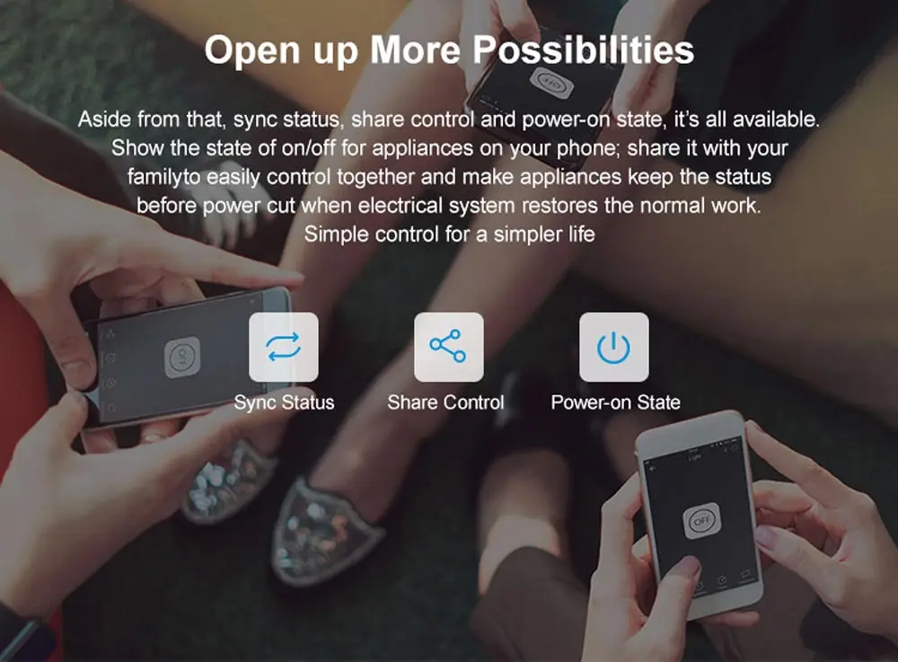 Кроме того, статус синхронизации, управление совместно и режим включения питания, все доступны itis. Показать состояние ВКЛ/ВЫКЛ для приборов на вашем телефоне; Поделиться им с семьей, чтобы легко контролировать вместе.