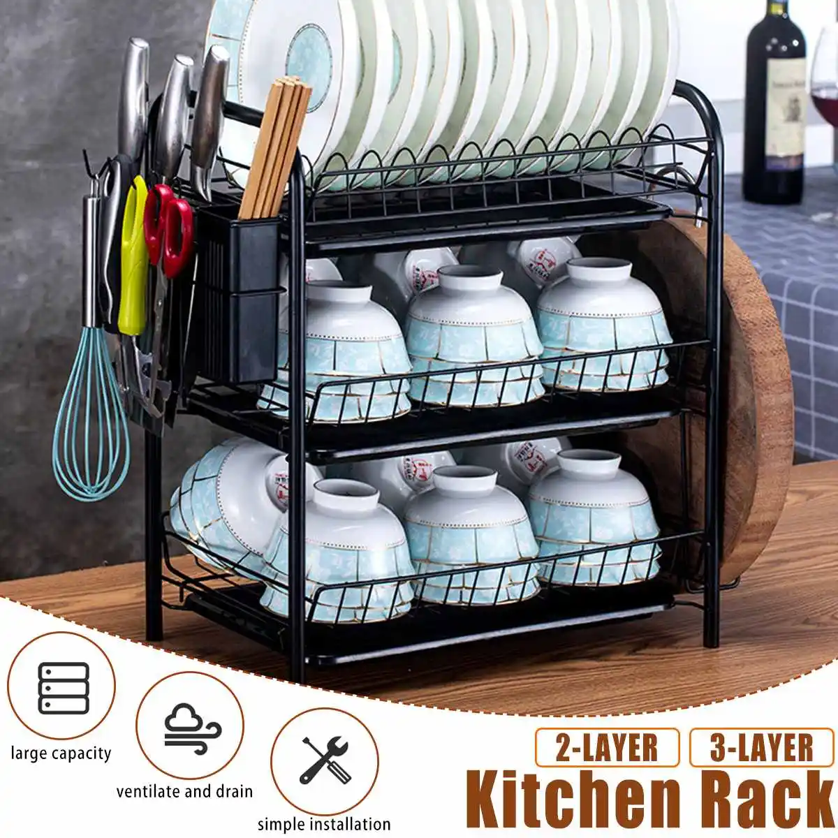 Оборудованный стеллаж для посуды/корзина для хранения/разделочная доска/сковорода для воды
