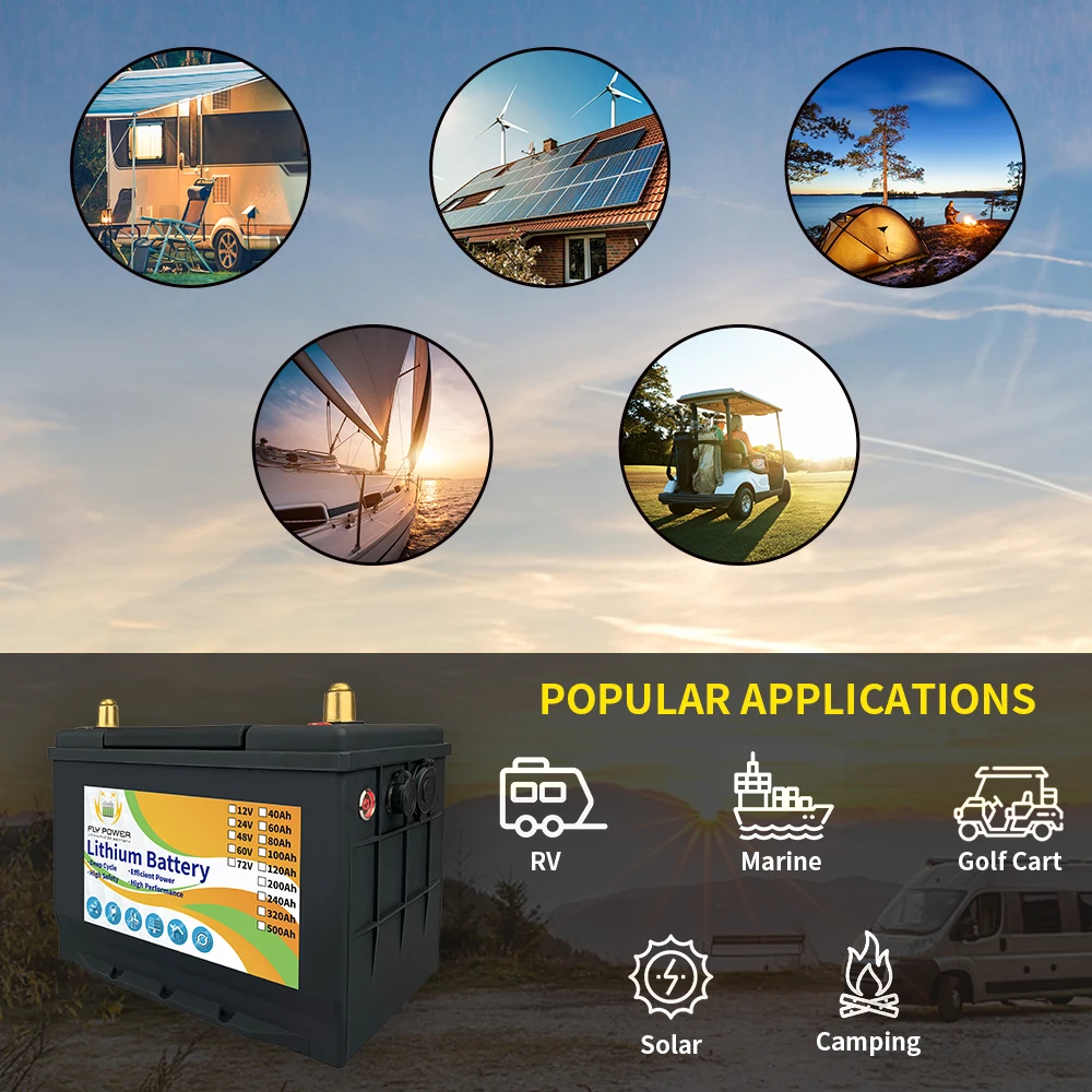 Флиповэр 12V 80Ah LiFePO4 Батарея 960Wh Встроенный BMS литий-железо-фосфатных аккумуляторов и Батарея 12V для RV Кемпер гольф-кары солнечной энергии