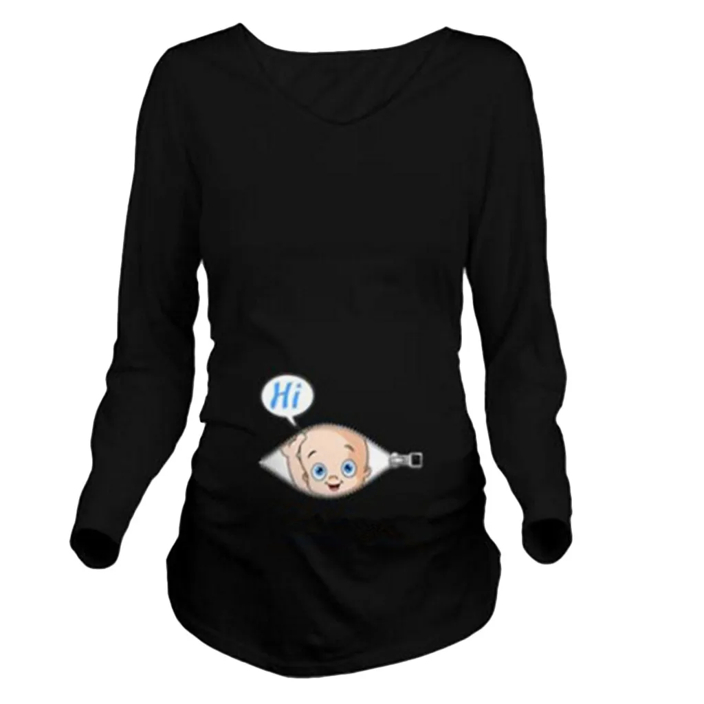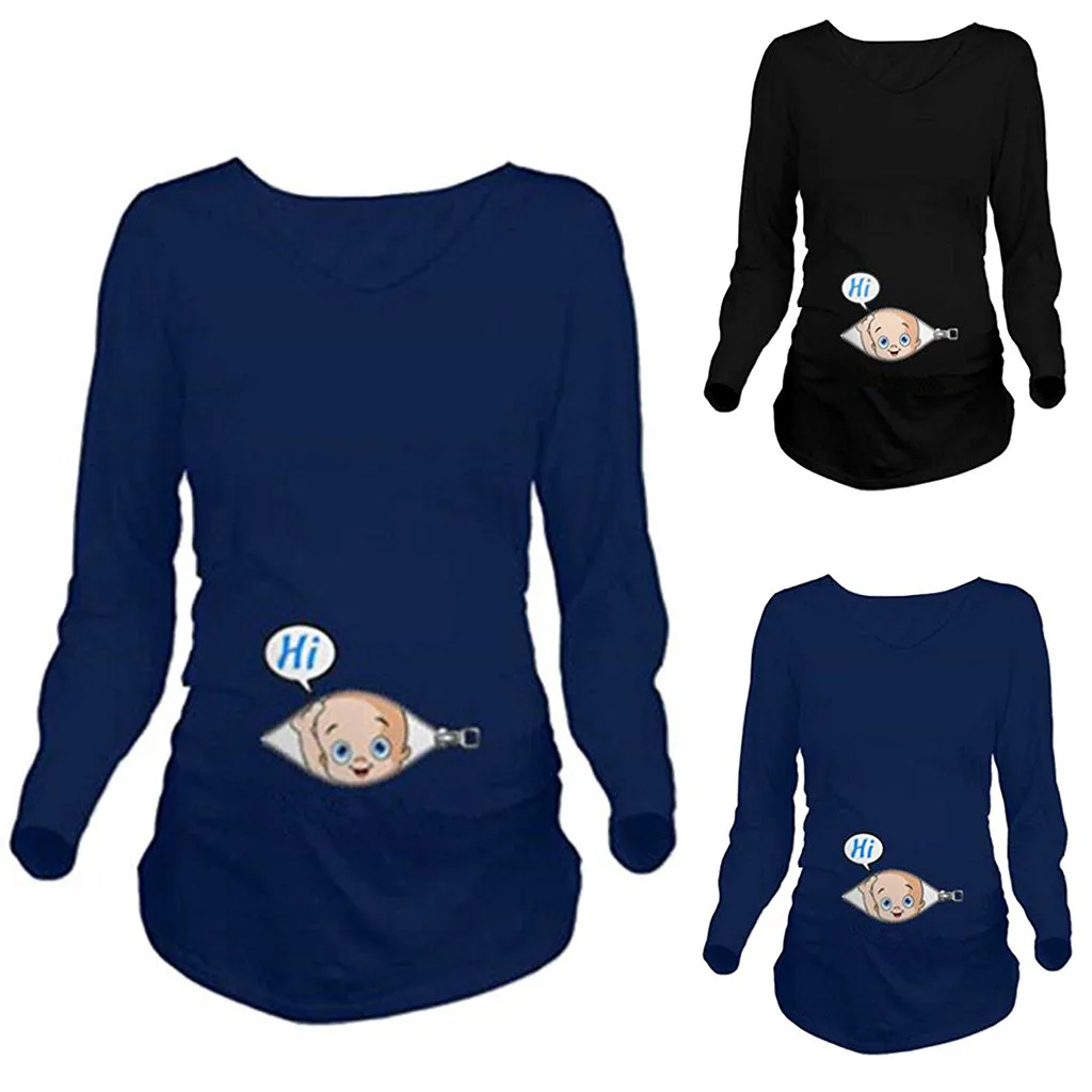 Повседневная одежда для беременных женщин; Одежда для беременных женщин; Футболка с принтом в карманах для беременных; Футболка; Одежда для беременных