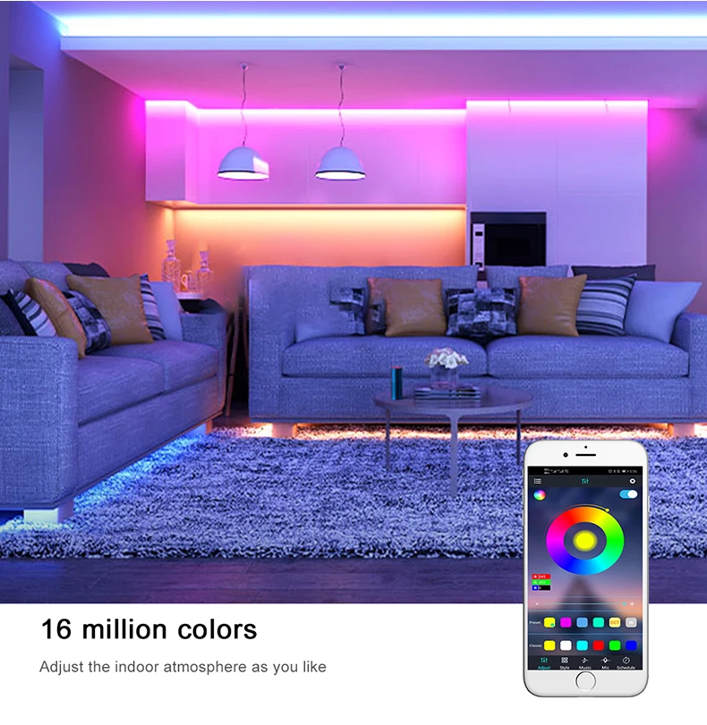 【APP Управление 】 Управление верескового цвета, светодиодный светодиодные полосы света через приложение, дистанционный пульт Управление и Управление;. С помощью приложения вы можете свободно контролировать 16 миллионов цветов. Bluetooth полосы светильник имеет умный режим воспроизведения музыки, которая создает Романтика, релаксация, вечерние атмосферу с музыкой, светильник s цвет будет изменяться при попадании музыкальными ударов или своему микрофону.