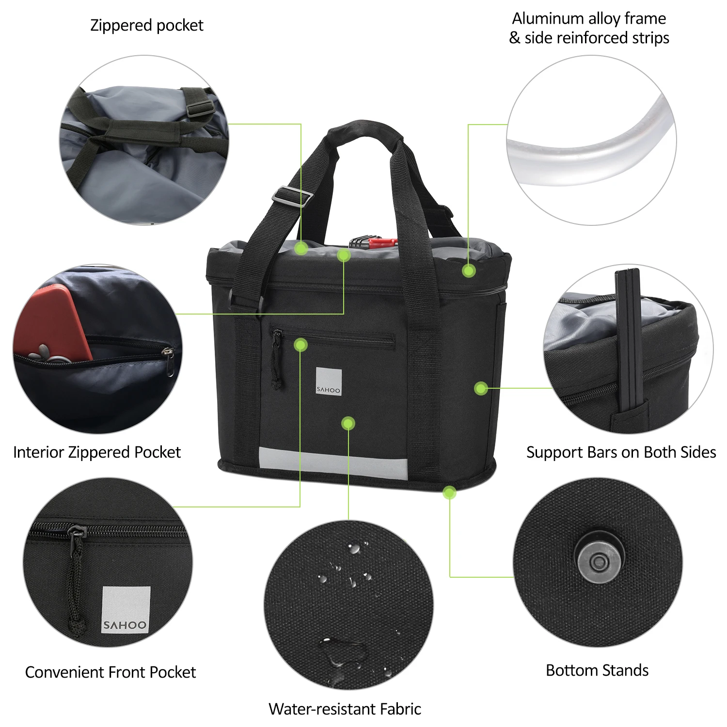 Эта многофункциональная велосипедная сумка предназначена для любителей велоспорта, изготовлена из высококачественного полиэфирного материала, водостойкая и износостойкая, большая емкость 18 л, может удерживать до 5 кг/11 фунтов, идеальный выбор для повседневной жизни или коротких поездок.