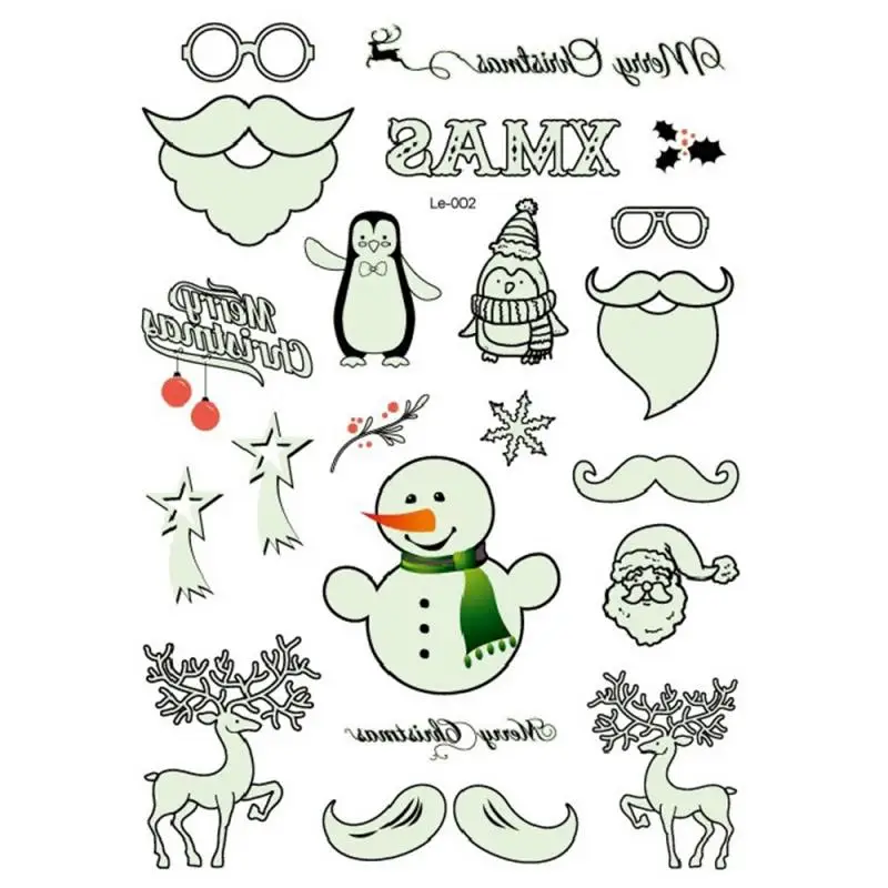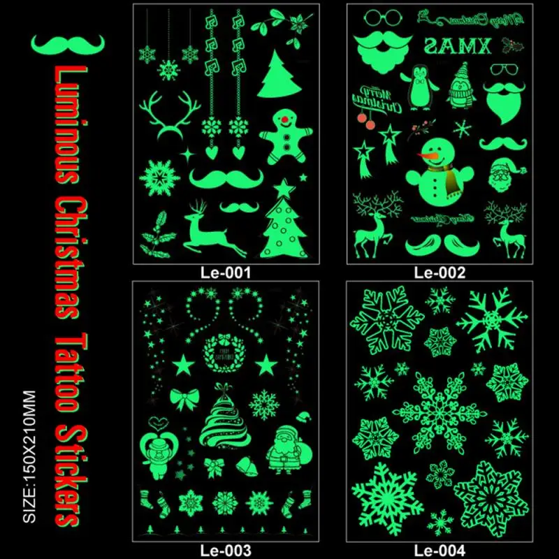 Флуоресцентные светящиеся татуировки, 1 шт., светится в темноте, Временные татуировки, наклейки, детское украшение для рождественской вечеринки, водонепроницаемые наклейки