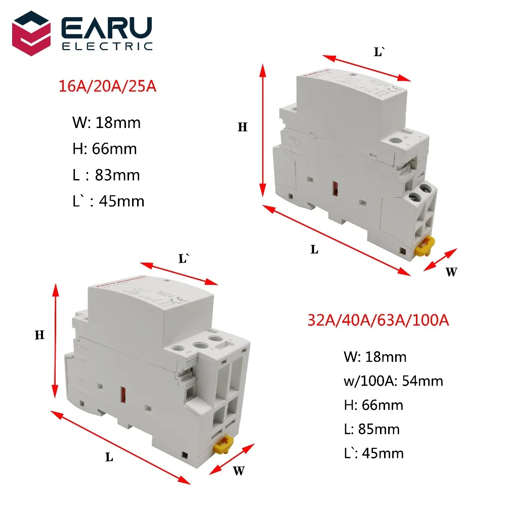 EACT2P25/63/100Контактор переменного тока для дома в Основном предназначен для цепей переменного тока 50 Гц или 60 Гц с 230 В. Номинальное рабочее напряжение в использовании AC7a, Номинальное рабочее напряжение до 230 В, номинальный рабочий ток до 25А, Номинальное рабочее напряжение в использовании AC7b, номинальный ток до 10А. Использование в разрыве мощности ниже 6kA цепи. Для расстояния подключения или прерывания цепи.