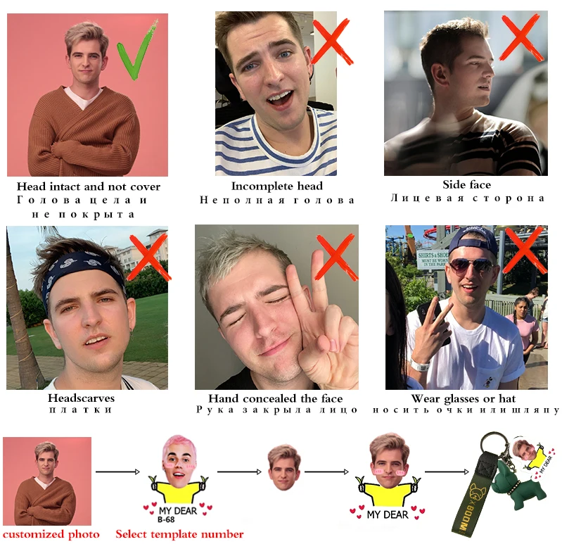 Требования к фото:1. Предоставьте HD фото 2. Лицо персонажа не покрыто, например, очки, шляпы, головные уборы, руки и так далее 3. Держите голову в целости и сохранности