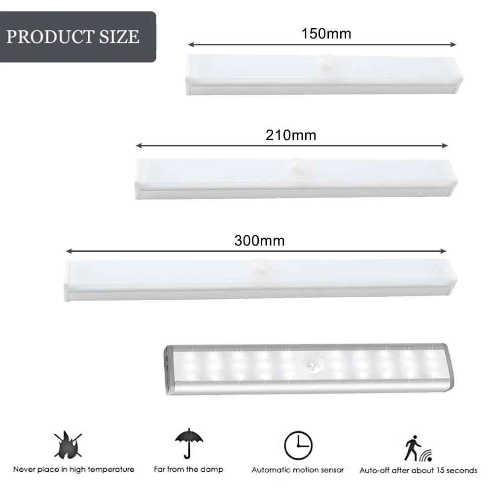 Для шкафа, шкафа, ванной комнаты, коридоров, коридоров, лестниц, подвалов, хранения и детской комнаты, двери, чердака, подвала, гаража. • Посылка включает в себя: 1x15 см/21 см/30 см Светодиодная подсветка под шкаф 1 x клейкая магнитная лента 3M 1 х USB кабель