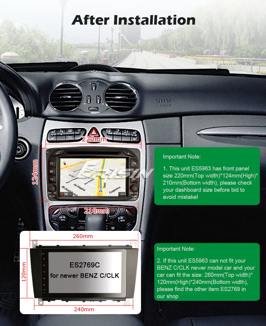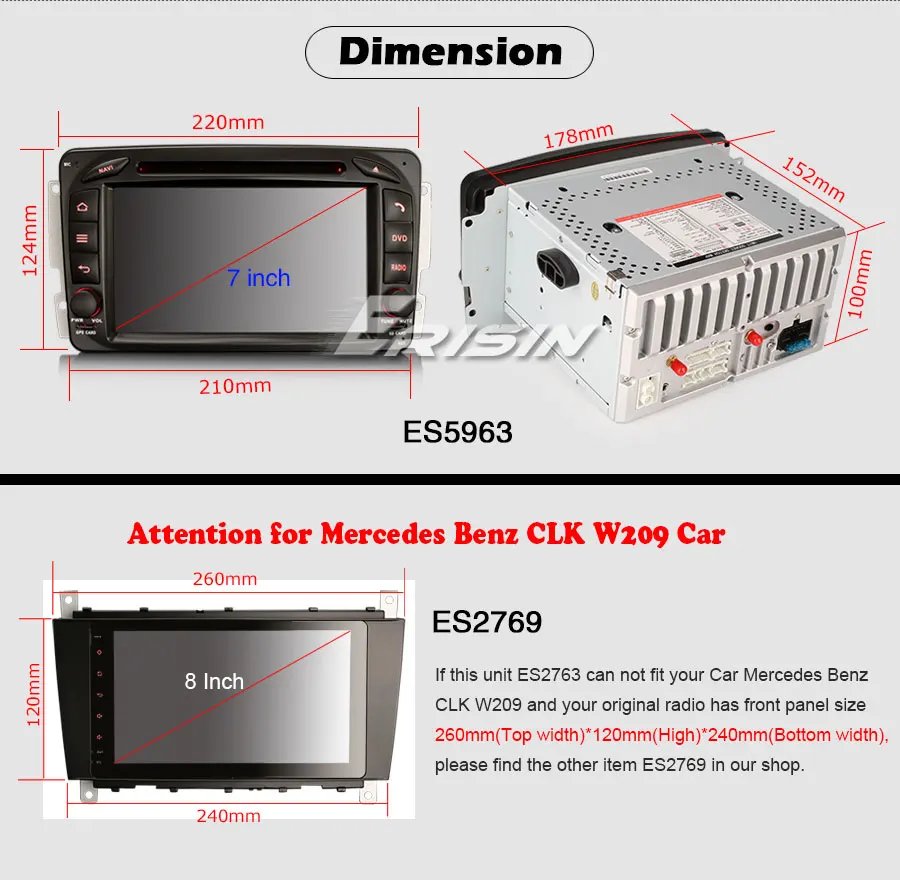 2. Если размер передней панели этого устройстваНе подходит к вашемуBENZ C/CLK Новая модель автомобиля, Пожалуйста, найдите другой товарES2769CВ нашем магазине