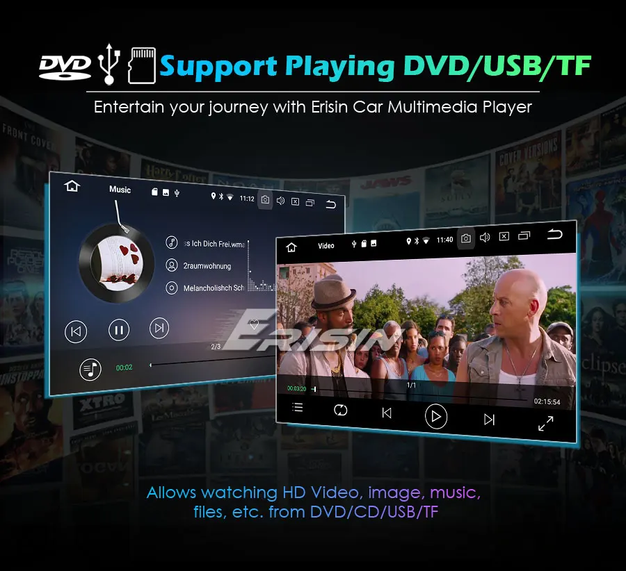 -Встроенный мультимедийный плеер Android, может воспроизводить музыку/видео/фото с локального диска или USB/TF.