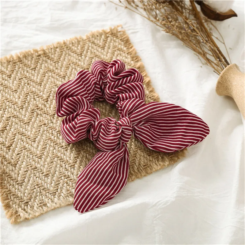 Женские резинки для волос в полоску с заячьими ушками, женские резинки для волос с бантиком, модные резинки для волос, аксессуары для волос