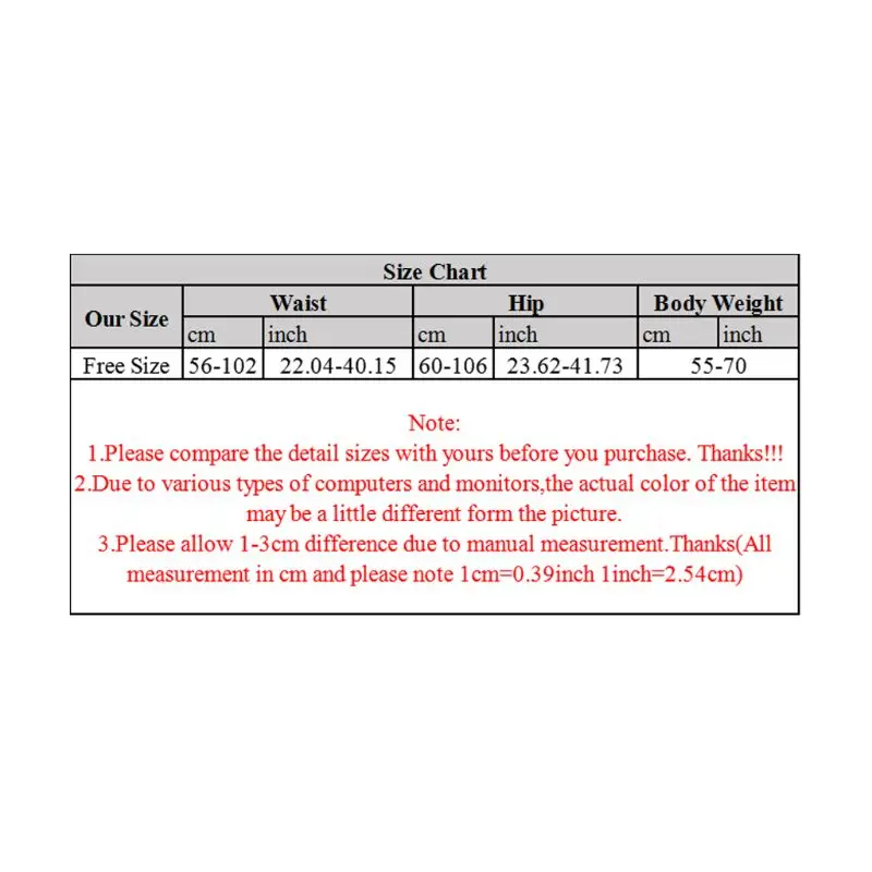 Размер: один размер талия: 56-102 см (22,04-40,15 дюйма) бедра: 60-106 см (23,62-41,73 дюйма) вес тела: 55-70 кг