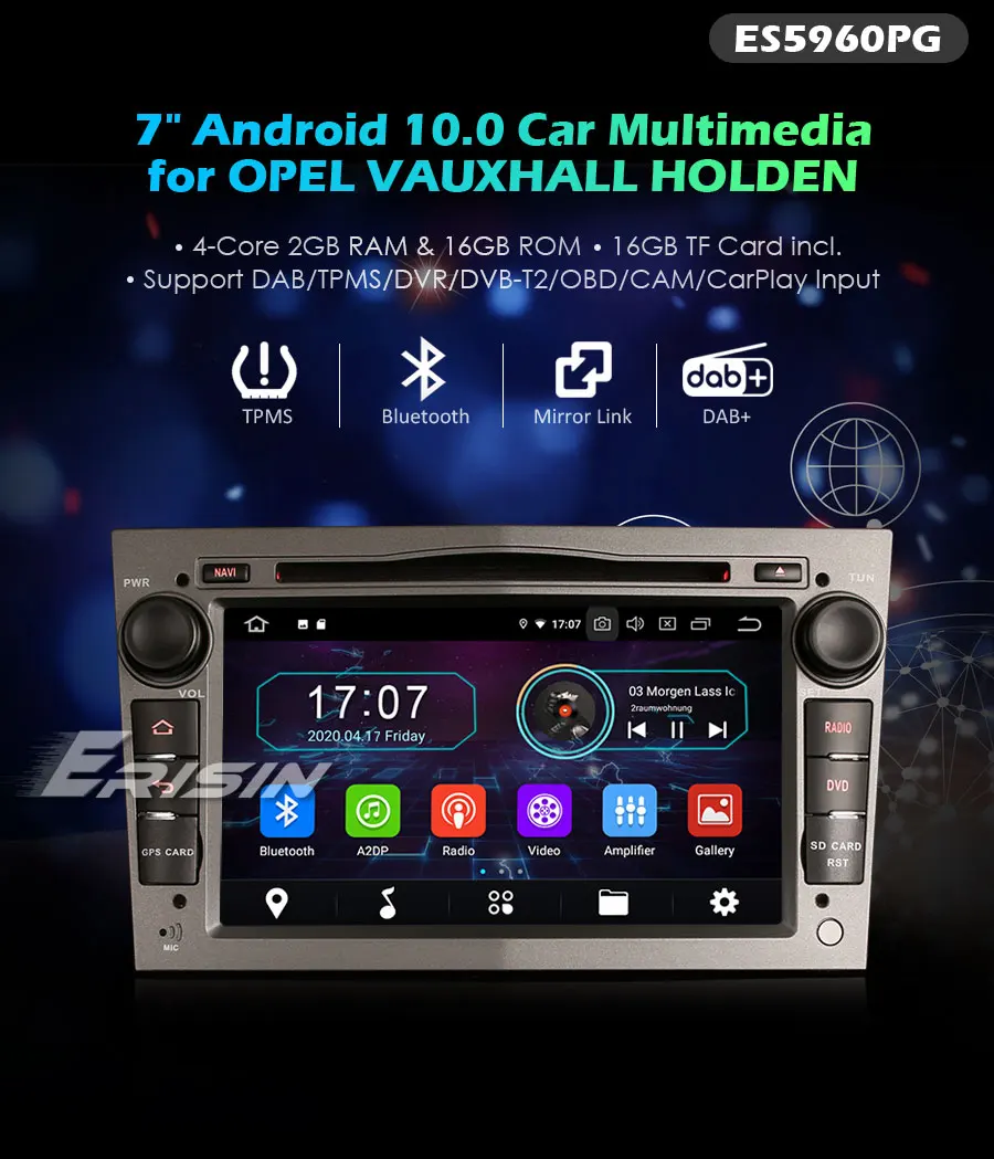 ES5960PG 7 "четырехъядерный емкостный Android 10,0 Автомобильный мультимедийный плеер GPS2 ГБ + 16 Гб OBD2 DAB + Canbus WiFi 3G/4G USB DVR DTV-IN TPMS Bluetooth...