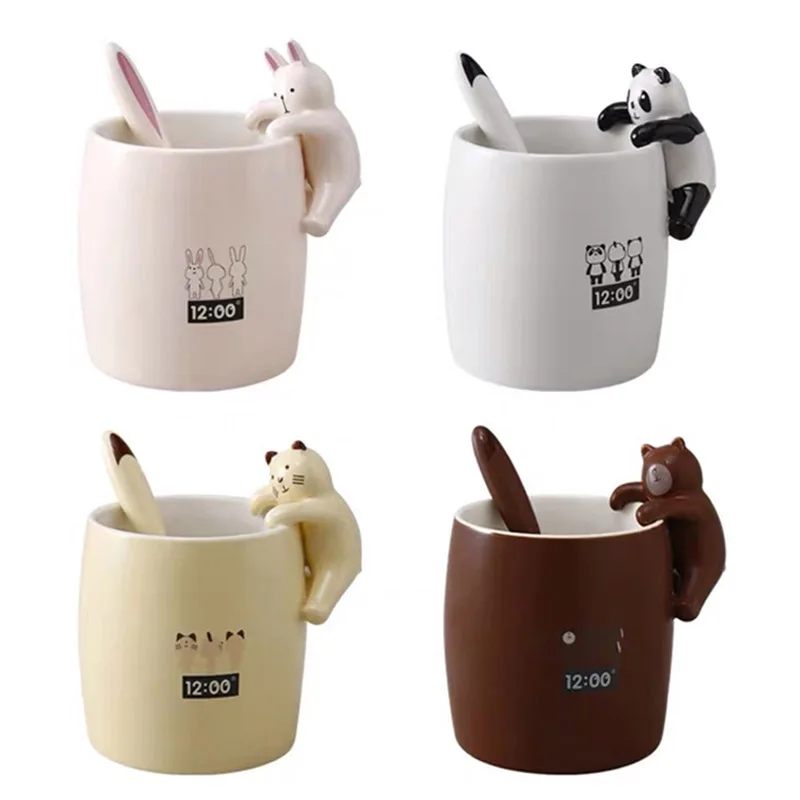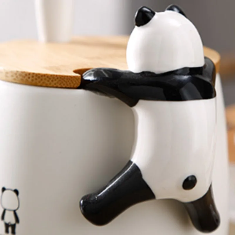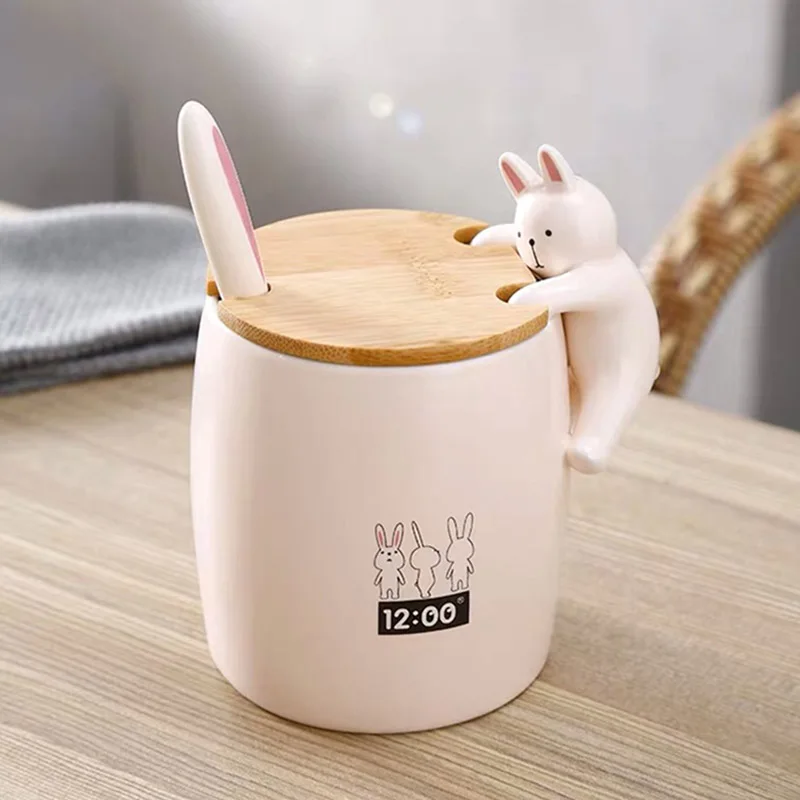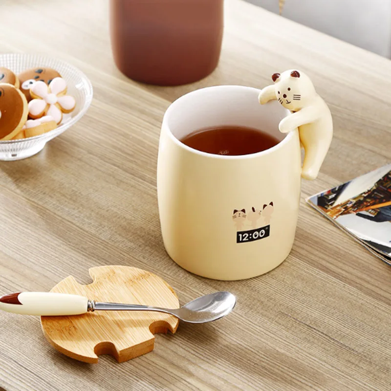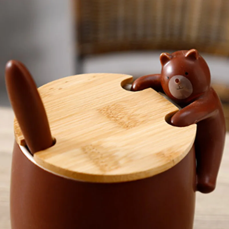 Стиль: 3D милая керамическая кружка с деревянной крышкой и ложкой