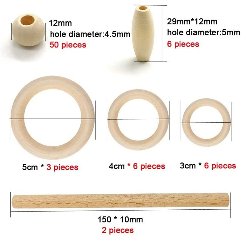 Три размера деревянных колец: Наружный диаметр 30 мм/1,18 дюйма (6 шт.), наружный диаметр 40 мм/1,57 дюйма (6 шт.), наружный диаметр 50 мм/1,97 дюйма (3 шт.) деревянное Кольцо изготовлено из натурального дерева с гладкой поверхностью и удобным прессом. Круглые и натуральные цвета дерева создают деревенский и ретро вид.