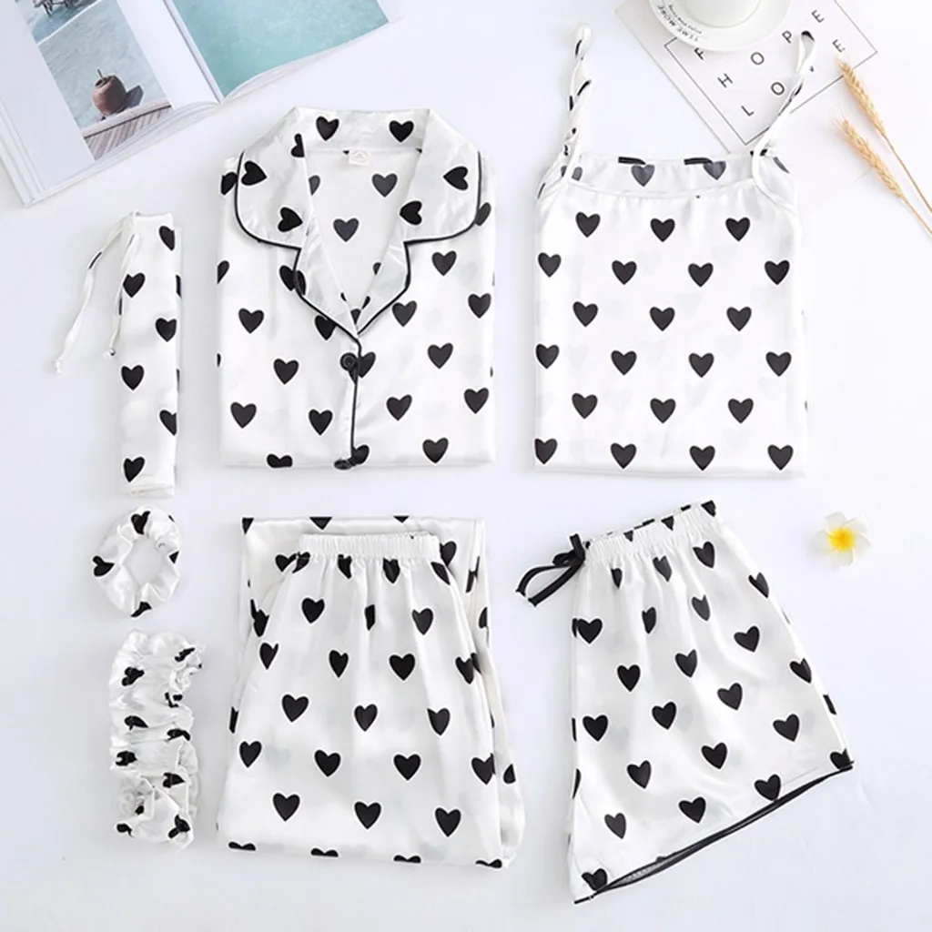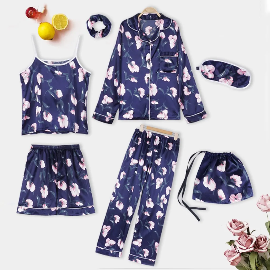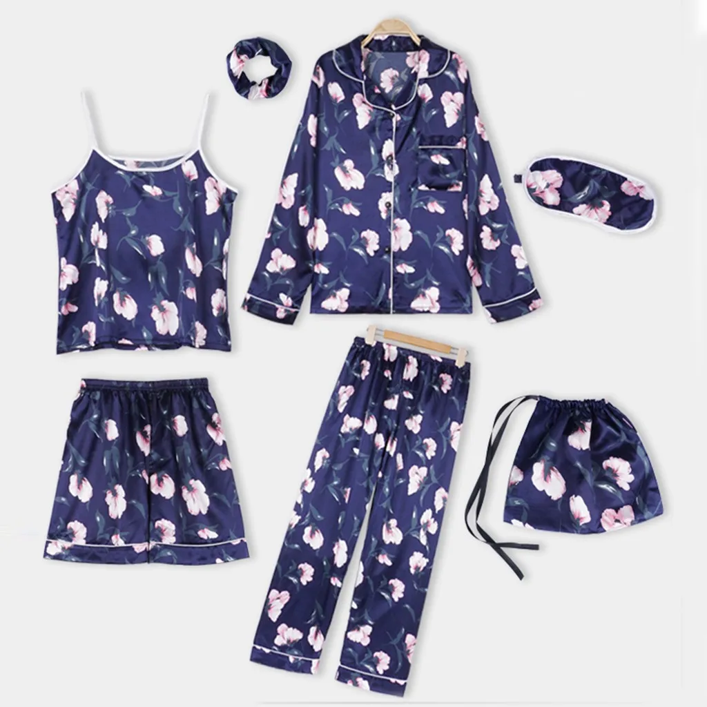 7 шт., шелковое женское нижнее белье, камзол, шорты с принтом, штаны, пижама с завязанными глазами, одежда для сна