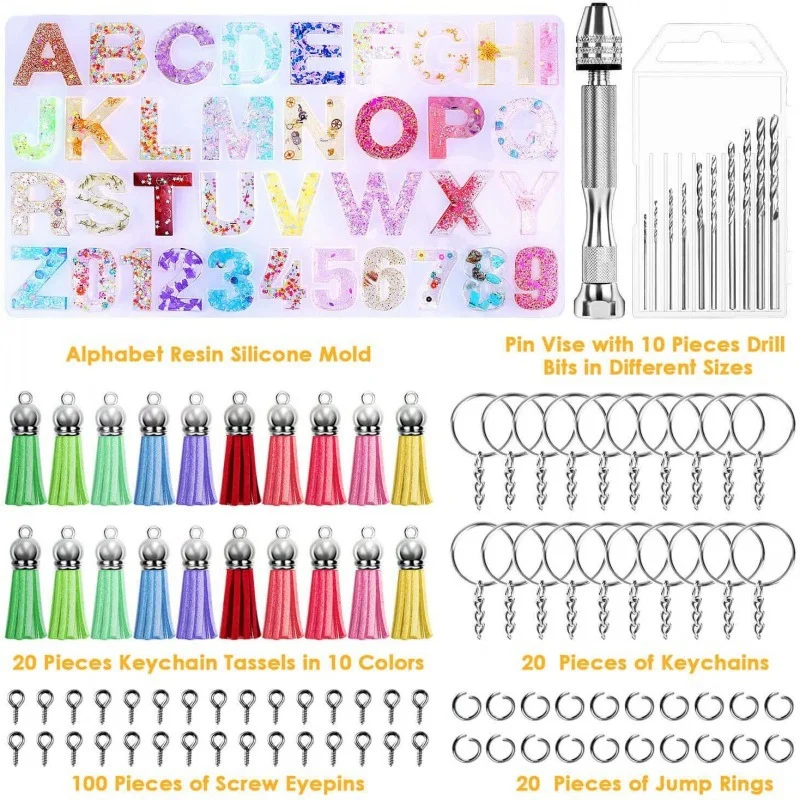 Простота в использовании: силиконовая форма для брелка гладкая и чистая, просто добавьте смолы и украшения в формы букв, а затем нажмите на другую сторону формы, и смола выходит гладко, когда она вылечена.