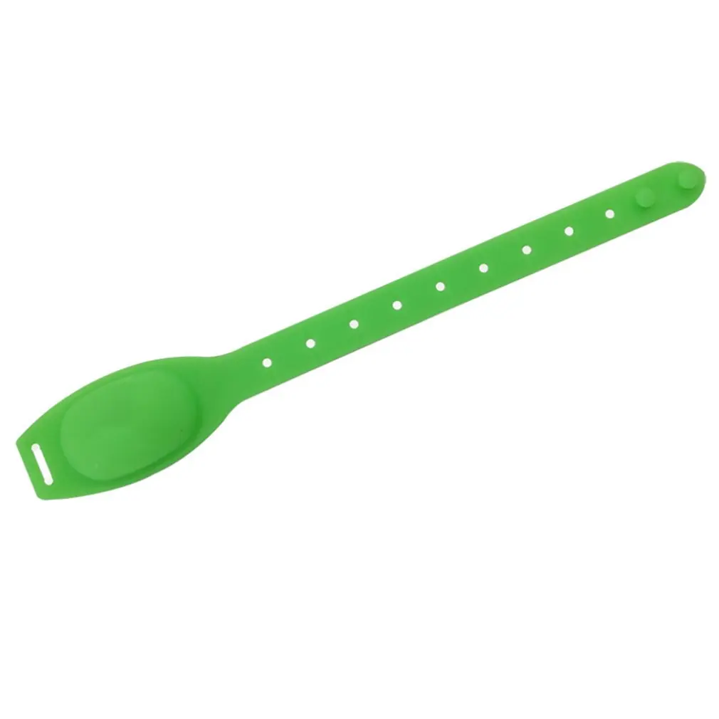 Просто поднимите крышку наполнителя и вставьте дезинфицирующее средство для рук, лосьон или продукт по вашему выбору в колпачок наполнителя браслета. Закройте крышку плотно после заполнения.