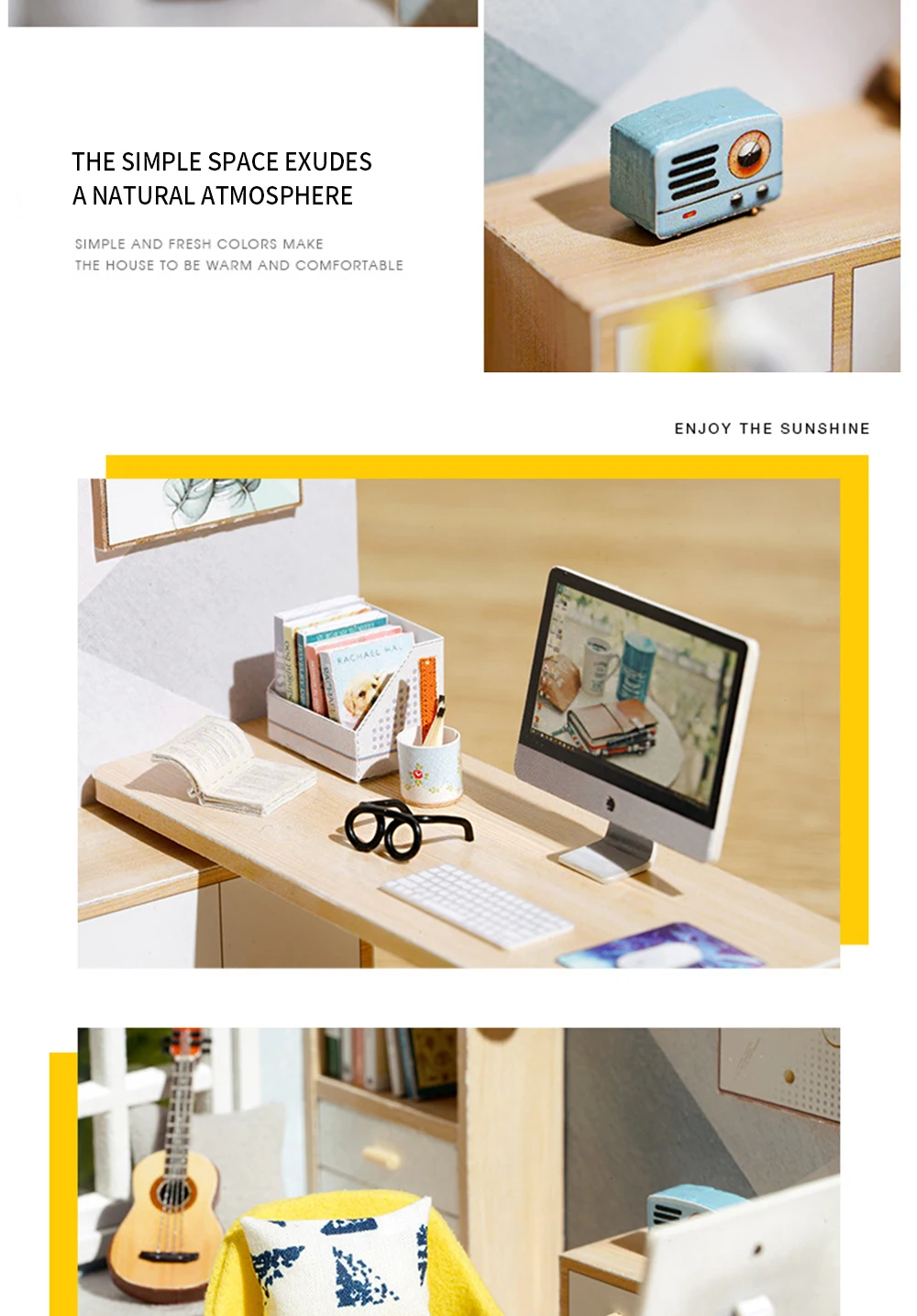 DIY кукольный домик набор миниатюрные кукольные домики мебель простой стиль Все товары такие же, как на изображении. Они поставляются с частями, и вам нужно собрать их самостоятельно. 1. Включая всю отображаемую мебель 2. Стиль: Современный и простой 3. Размер готового продукта: 12,7*10*10 см 4. Материал: дерево, ткань, бумага, смола, пластик, материал 5. Руководство: с инструкцией 6. Необходимые ручные инструменты: ножницы, нож, дырокол, точный пинцет, отвертка, клей 7. Изделие имеет детали и должно быть собрано Примечание: 1. Не включает инструменты/клей/аккумуляторы. 2. Возраст: подходит для детей старше 8 лет 3. Дети до 3 лет должны сопровождать взрослых