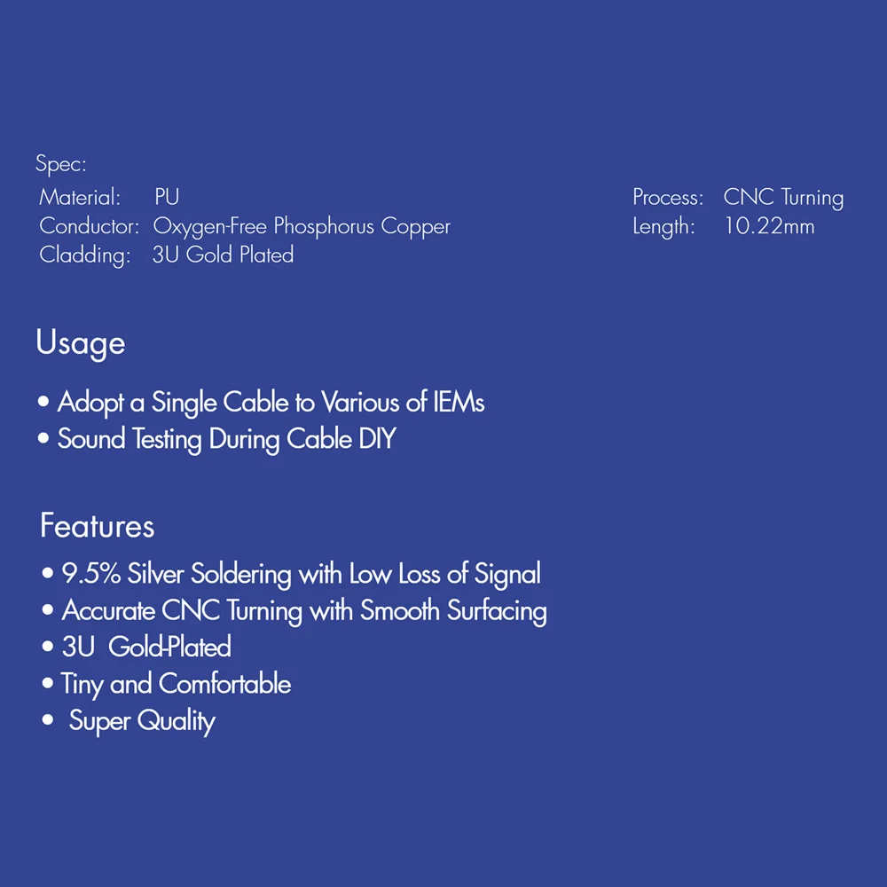 Аксессуары для наушников с адаптером Тип-1:MMCX Female до 2Pin 0,78 мм Male Тип-2:2Pin 0,78 мм Гнездо MMCX Male Описание OEAudio-Optimization Elements производит профессиональные Аудио компоненты и кабели. Все продукты, которые мы производим, имеют профессиональный дизайн, а также изготовлены из материалов с отличными физическими свойствами и качеством. Параметры Корпус: искусственная кожа Разъем: 3u-позолоченный Пайка: Mondolf Supreme Процесс: инъекция полиуретана