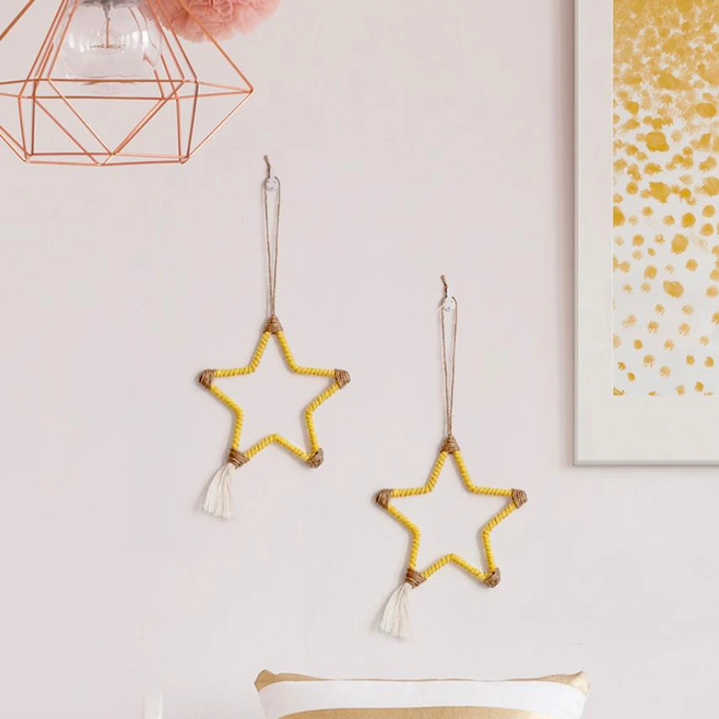 Wall Hanging, Nordic Style Woven Star Wreath with Tassel for Home, Apartment, Nursery, Party Decor