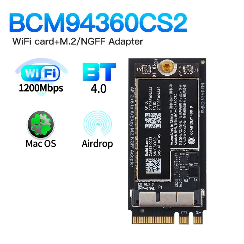 BCM94360CS2 BCM943224PCIEBT2 беспроводная карта для NGFF M.2 ключ A/E адаптер для Macbook OS и Hackintosh.