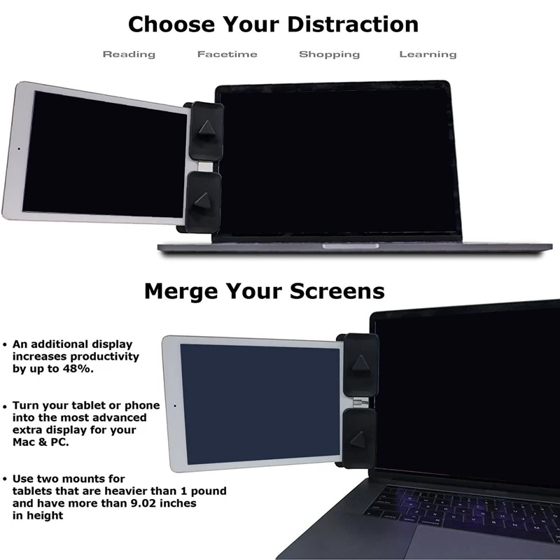 Несколько мониторов-этот монтируемый боковой зажим может прикрепить планшет или мобильный телефон к ноутбуку, чтобы получить опыт работы с несколькими дисплеями, расширить ваш sn, повысить производительность и многозадачность дома, офис или на ходу