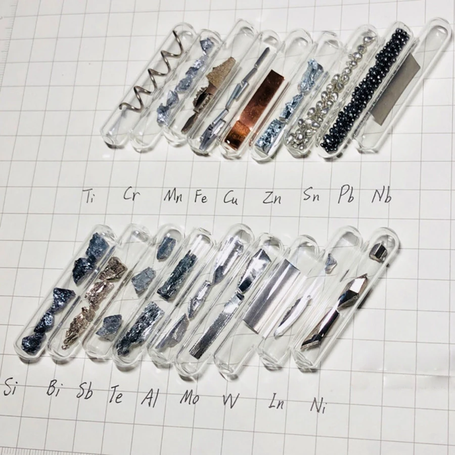 Медные Cu ломтики (9995), чистый цинк Zn блоки (99994), чистые оловянные частицы (9999), чистый свинец Pb частицы (9999),