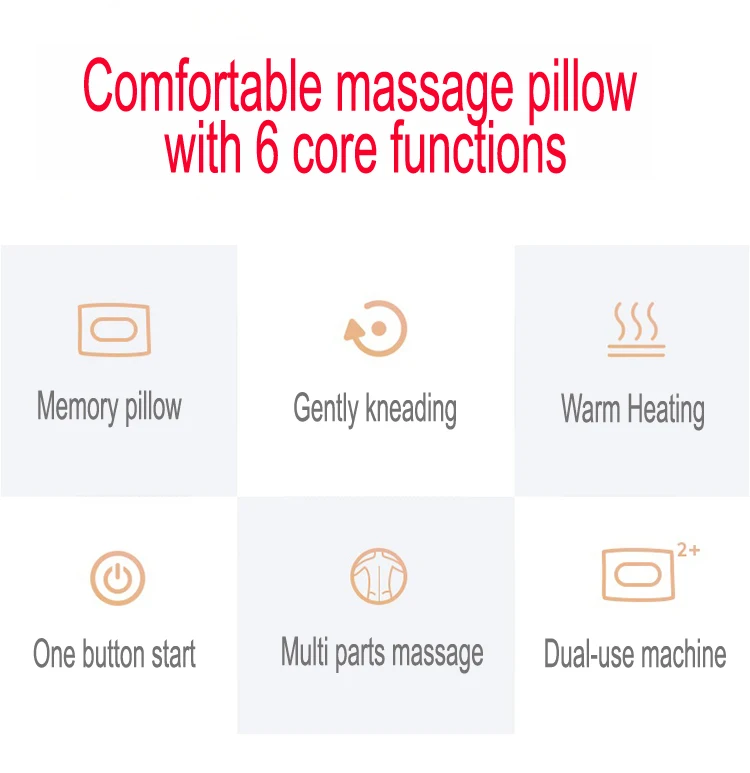 1) Модный и оригинальный дизайн, это хороший компаньон для автомобиля, офиса и дома; 2) Кнопка предназначена для включения и выключения фюзеляжа; 3) импульсный источник питания DC12V, один ключ запуска, очень безопасный, простой в эксплуатации; 4) использовать на спине, шее, ногах, животе или в любом другом положении; 5) дизайн 8 массажных шариков, катящийся назад и вперед, разминающий массаж, с функцией нагрева; 6) конструкция имеет 15 минут Функция синхронизации.