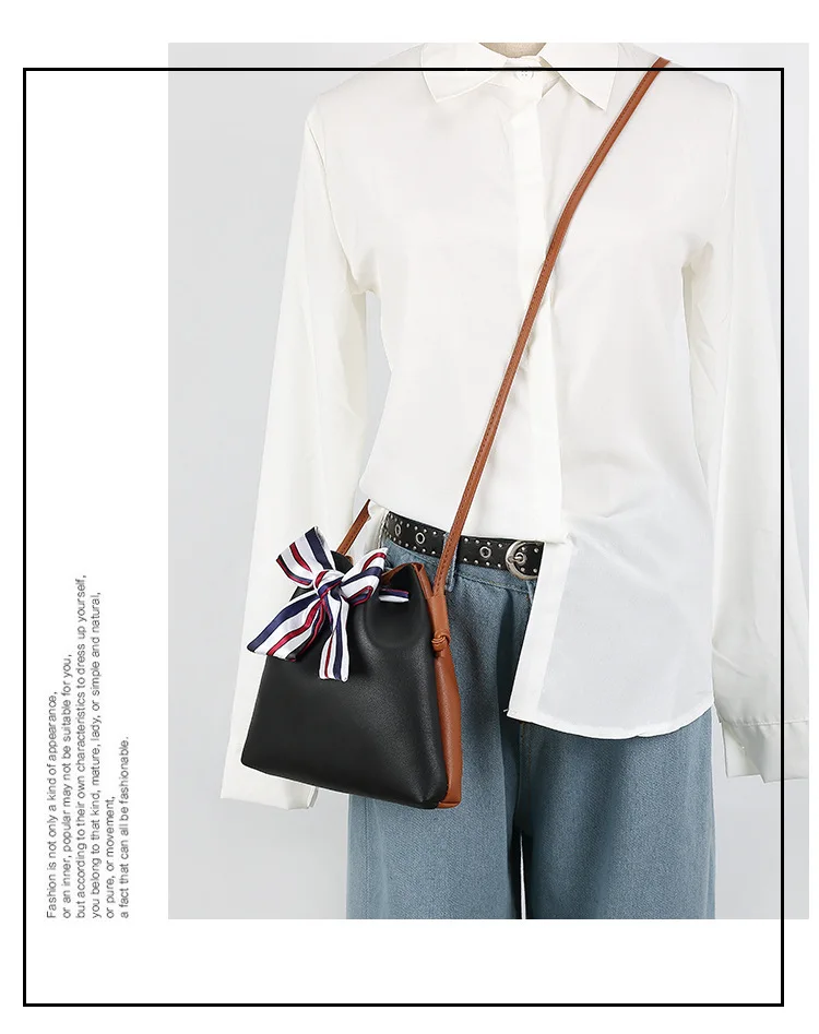 Высококачественная сумка-ведро с шелковым шарфом 2020 новая простая сумка через плечо с квадратным бантом