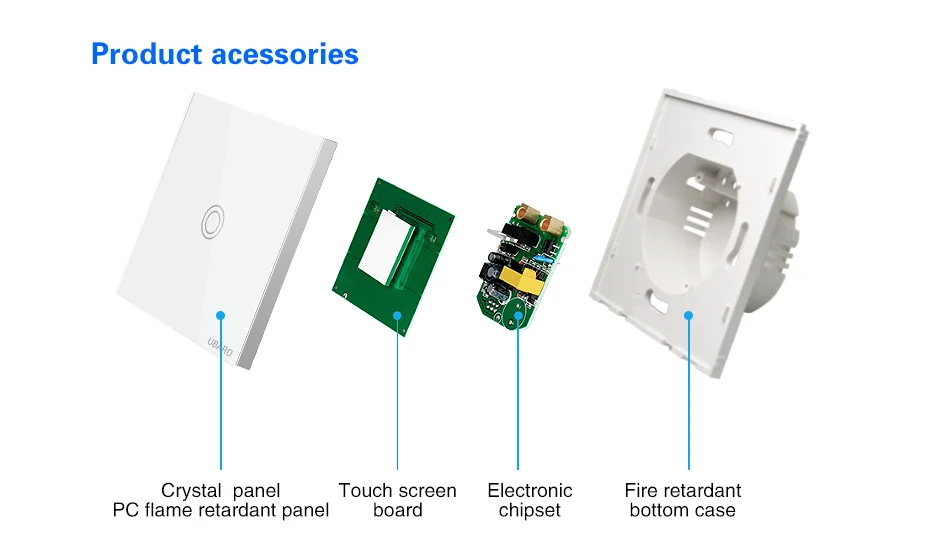 1 * сенсорный переключатель 2 * длинный винт 1 * Защитный конденсатор 1 * Руководство пользователя 1 * коробка для посылка