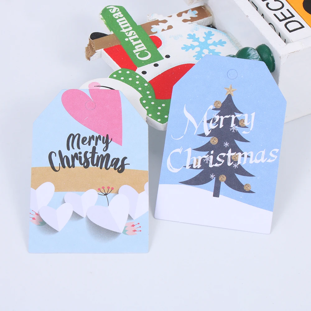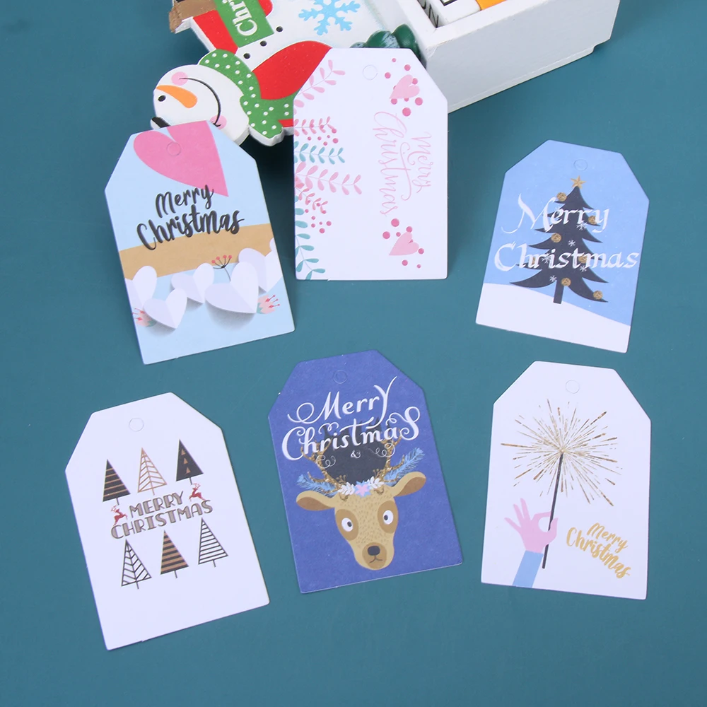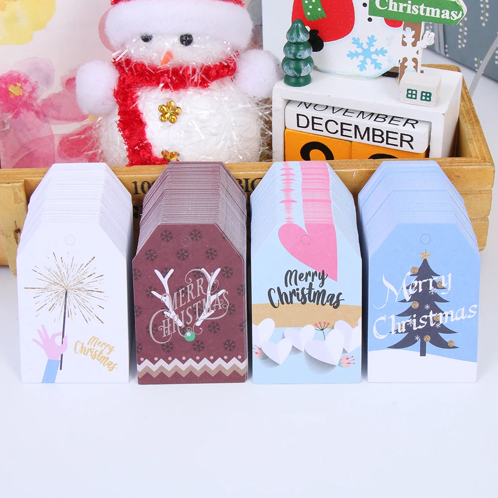 100 шт. рождественские этикетки, крафт-бирки, подарочная упаковочная бумага, подвесные бирки, Санта-Клаус, бумажные карты, товары для рождевечерние
